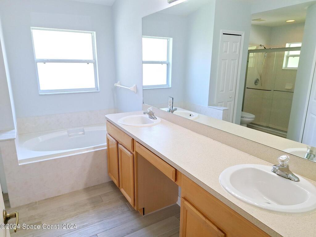 Available June 1st for move in. Beautiful Hammock Lakes Home in West Melbourne backing to quiet nature preserve. This home features an open floor plan with 3 bedrooms & 2 baths with modern stainless-steel appliances. Enjoy peace & quiet on the screened back porch looking out at lush greenery. Fenced in backyard. Double sinks in Primary bathroom with large walk-in closet, soaker tub, walk-in shower, spacious rooms with vaulted ceilings, fans, open formal dining, upgraded Maple kitchen Cabinetry with eat-in breakfast area, tile in wet areas & entry. Quiet neighborhood near every convenience imaginable. You'll love living here. Small dog considered, no cats.Call Nelson Azevedo for Appointment: 413-323-9730