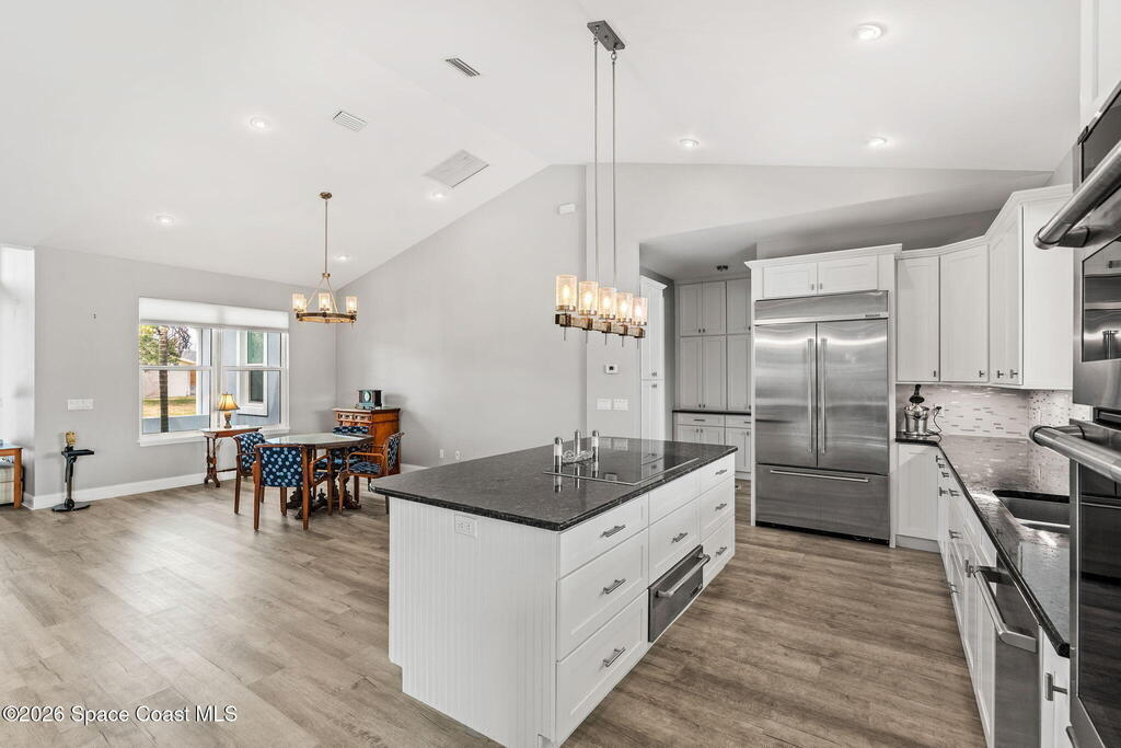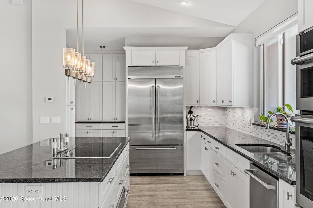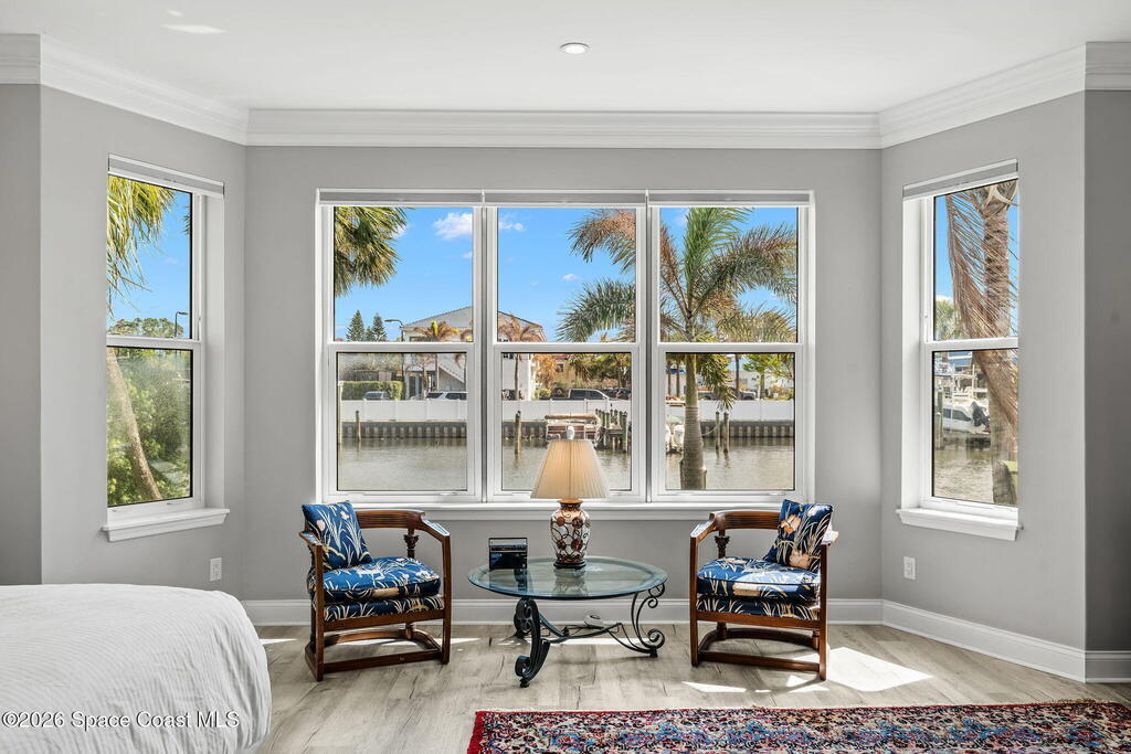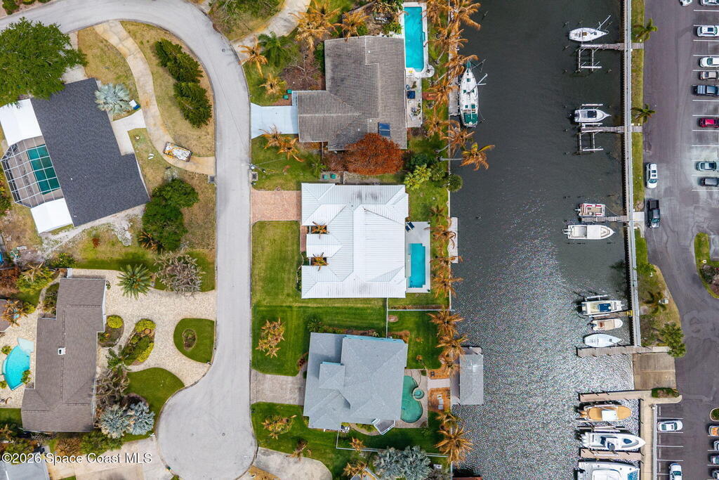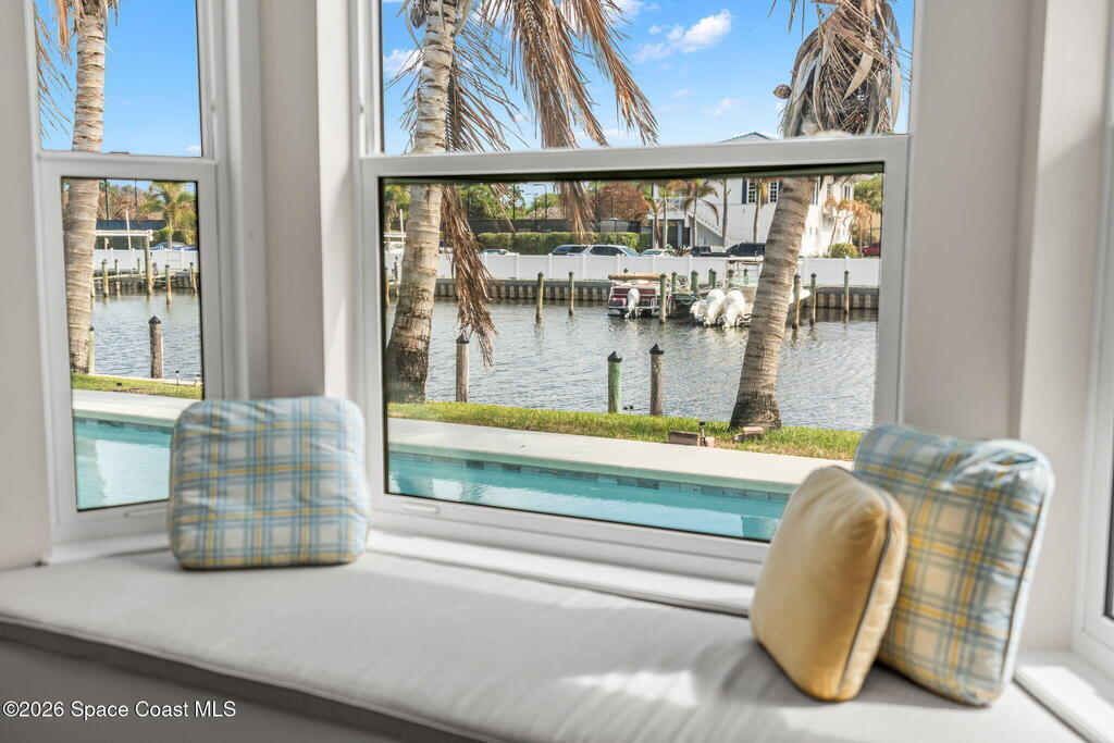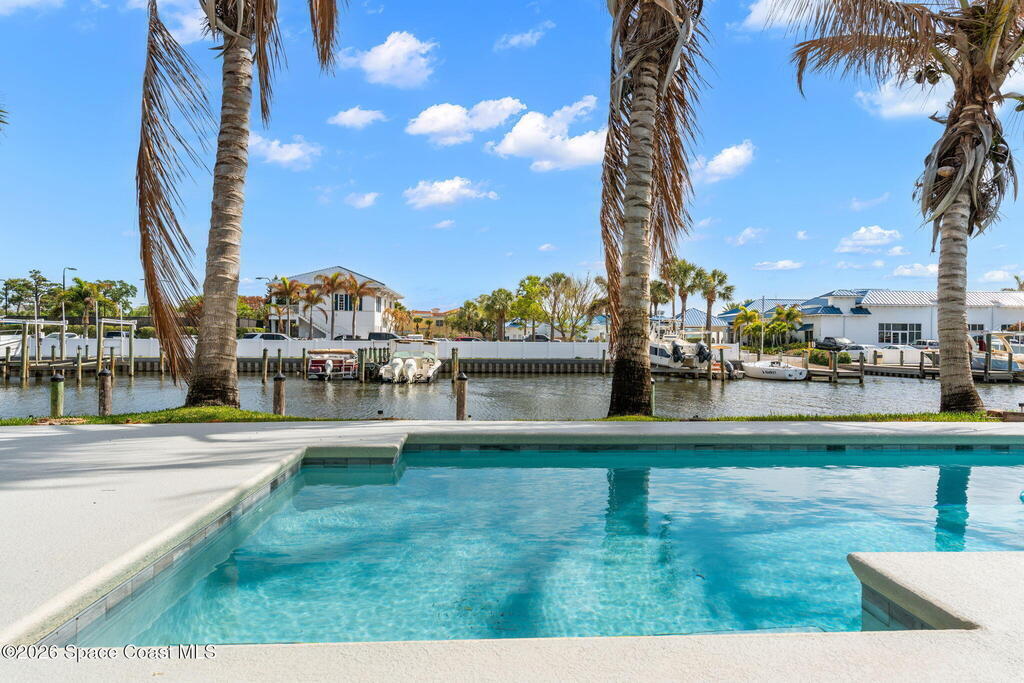 Completely rebuilt in 2019 and positioned on one of the most desirable canals in Indian Harbor Beach, this is the kind of property that rarely becomes available. Offering 90 feet of waterfront and located directly across from the Eau Gallie Yacht Club, the setting delivers a true boating lifestyle with no fixed bridges and immediate access to the Banana River and Indian River. From the moment you walk through the front door, the home opens to long water views, with accordion sliders that create a seamless indoor outdoor living experience around the pool.Taken down to the slab and rebuilt with concrete block construction, the home offers the feel of newer construction with impact windows and doors, a standing seam metal roof, and a clean, modern interior throughout. Vaulted ceilings and an open layout anchor the main living space, complemented by LVP flooring, a split bedroom plan, and a spacious kitchen with KitchenAid appliances, induction cooktop, double oven, and warming drawer.