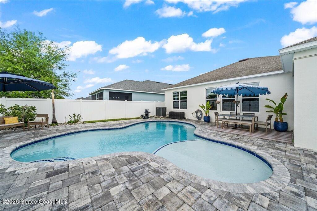 BEAUTIFUL POOL HOME, THIS 3/2 HOME HAS UPGRADED STONE ACCENTS, FEATURING AN OPEN FLOOR PLAN CONCEPT, A LARGE KITCHEN ISLAND SEPERATES THE KITCHEN FROM THE GREAT ROOM AND BREAKFEST NOOK. 42 INCH CABINETS AND STAINLESS-STEEL APPLIANCES. LARGE MASTER BEDROOM AND BATHROOM, COVERED PATIO, BRICK PAVERS, SALTWATER POOL SYSTEM, VARIBLE SPEED POOL PUMP, THIS POOL FEATURES A TANNING LEDGE THAT ALLOWS YOU TO PLACE SEVERAL CHAIRS IN THE 1-FOOT-DEEP WATER LEDGE, THE GAZEBO, OUTDOOR FUNITURE AND LARGE UMBRELLAS STAY WITH THE HOME.STORM SHUTTERS, IRRIGATION SYSTEM WITH PRIVATE WELL. CLOSE TO HWY I-95, THE MELBOURNE AIRPORT RESTAURANT, SHOPPING AND SCHOOLS. YOUR ONLY ABOUT AN HOUR FROM THE ORLANDO ATTRACTIONS LIKE DISNEY, SEAWORLD, UNIVERSAL STUDIO'S AND MORE.