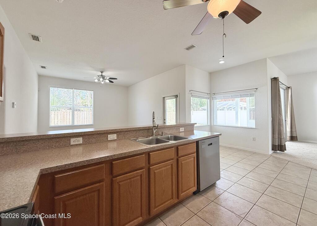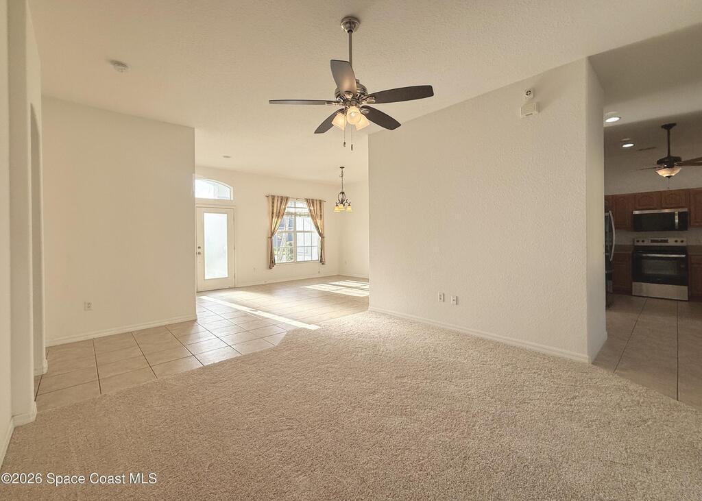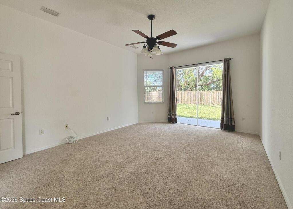 Centrally located in desirable Whispering Winds community of West Melbourne, ideally suited for corporate relocation orprofessional tenancy. This spacious residence offers a split floor plan with four bedrooms, or three bedrooms plus a dedicated homeoffice, and two full bathrooms across nearly 2,200 square feet of well-designed living space. The home is move-in ready and features brand-new appliances, including a refrigerator, electric cooktop, and oven.The split layout provides privacy for the primary suite, which includes a large walk-in closet, dual vanities, and an oversizedsoaking tub enhanced by abundant natural light. Multiple living and dining areas - including a formal dining room, family room, and a bright, open-concept kitchen - create a comfortable and functional environment for both everyday living and entertaining. The kitchen also features a generous pantry, breakfast bar ideal for casual meals. A large backyard offers a peaceful