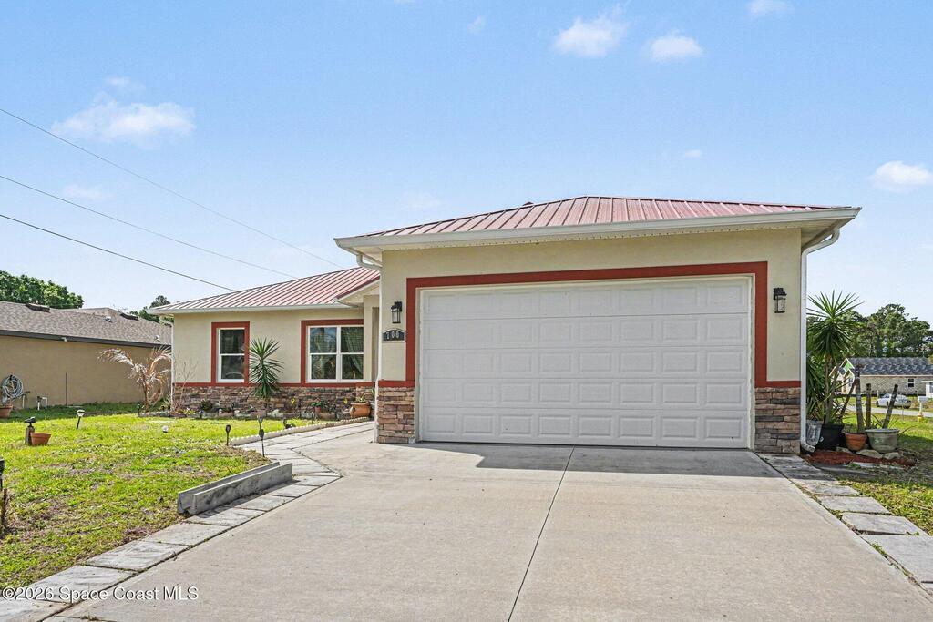 Built in 2023, this 3-bedroom, 2-bath concrete block home offers modern, move-in ready living on a corner lot with CITY WATER. Designed for low-maintenance living, it features a metal roof, tile flooringthroughout (no carpet), crown molding, gutters, and a screened-in patio. Open-concept layout with great natural light creates a clean, modern feel. The kitchen includes granite countertops, stainless steelappliances, updated lighting, and sleek finishes. The spacious primary suite offers dual walk-in closets and an ensuite bath with double sinks, jetted tub, and separate shower. Conveniently located closeto restaurants, shopping, and everyday essentials, this home checks all the boxes for comfort, style, and convenience. Low maintenance and built for real life.