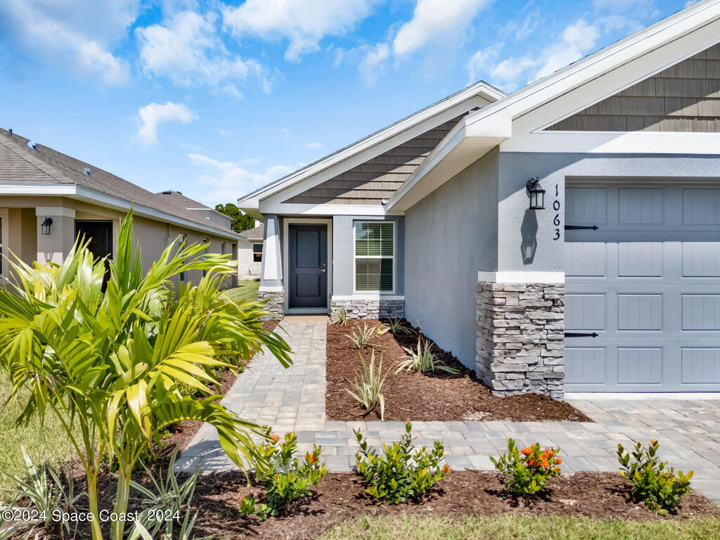 Here is your Chance to Live in a Brand new home, in the newly built highly desirable Gardens at Waterstone. situated south of all the hustle and bustle of palm bay you will feel as if you are in your own new little town. This home has the perfect layout 3 bed 2 bath split bedroom open floor plan, covered back patio. Tile through out living areas This home is brand new and we are putting on the finishing touches. Blinds and celling fans will be installed throughout. The community of waterstone will have all the amenities you could ask for, gated, playgrounds, community pool, pickle ball courts and so much more. close to new highway exit and tons of new shopping and entertainment coming soon. Don't miss your chance to be one of the first to experience all this new community will have to offer