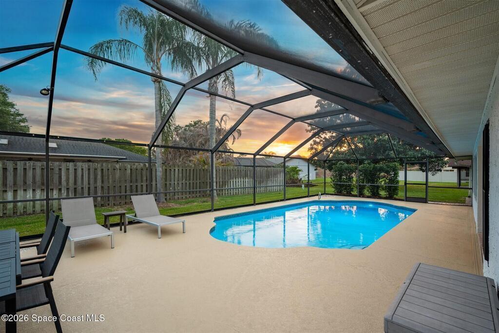 SELLER HAS ASSUMABLE VA MORTGAGE AT 2.25%. Located in the highly sought-after Crystal Lake community of Suntree, this fully remodeled, move-in ready 3-bed, 2.5 bath pool home with a 2-car garage offers the perfect combination of modern upgrades, thoughtful design, and long-term peace of mind. From the moment you arrive, the charming paved front courtyard creates a warm and inviting entry, setting the tone for the quality found throughout. Inside, the open floor plan is filled with natural light and enhanced by new flooring throughout, updated baseboards, recessed LED lighting, and designer ceiling fans. The spacious living area features a cozy gas fireplace and flows seamlessly into the dining and kitchen spaces, making it ideal for both everyday living and entertaining. The beautifully updated kitchen serves as the heart of the home, showcasing quartz countertops, new cabinetry, a stylish backsplash, and high-end appliances. A new washer and dryer add convenience, while (more)