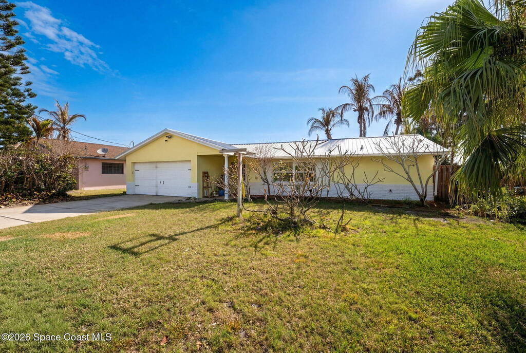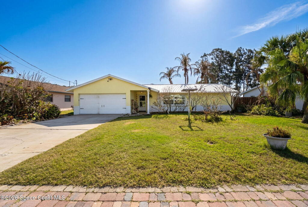 Beachside living without the beachside price tag - this one hits different. Fully dialed-in and move-in ready, this 3-bedroom, 2-bath home brings the upgrades buyers actually care about: metal roof (2018), brand new HVAC (2025), water heater (2024), and storm shutters (2021). Inside, the renovated kitchen and bathrooms deliver a clean, modern feel, while tile and laminate flooring keep things low-maintenance and coastal-cool. Split bedroom layout adds privacy, and the 2-car garage checks the storage box. Step out back to a private, fenced yard - perfect for pets, entertaining, or unwinding after a beach day. And yes... you can walk to the ocean. Washer and dryer included, stress not included. This is the kind of home that makes you wonder why you didn't move sooner!