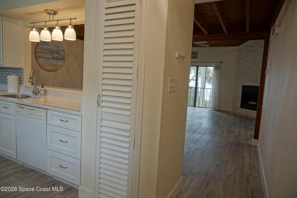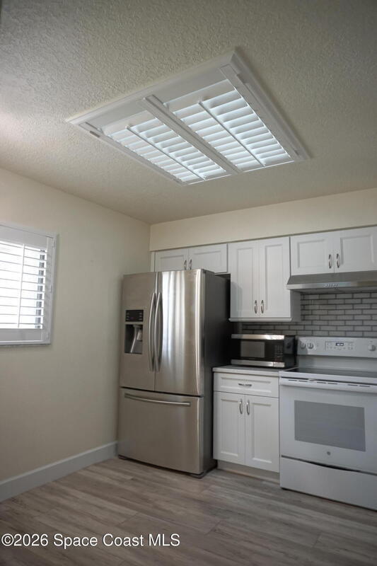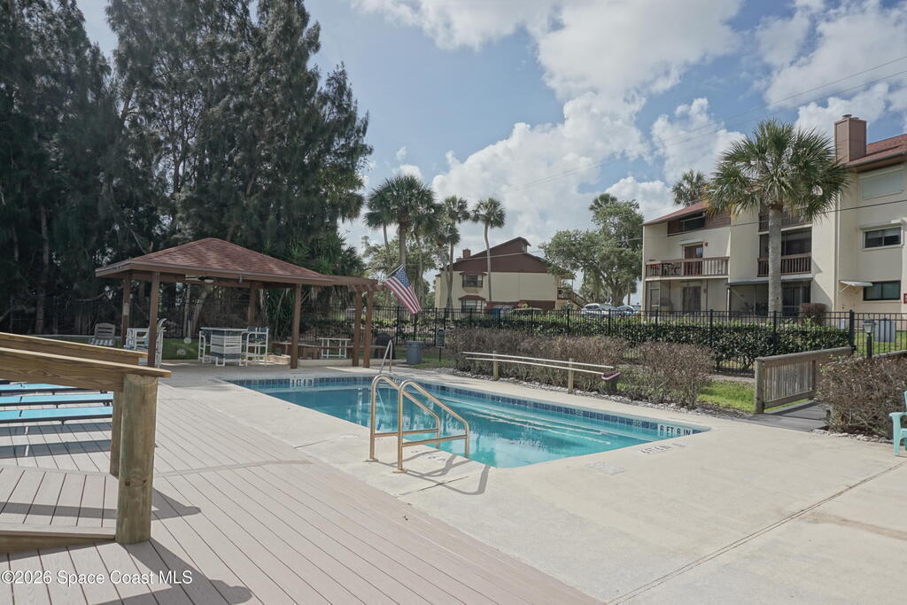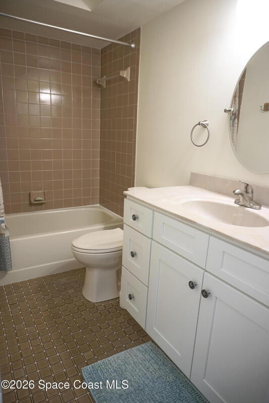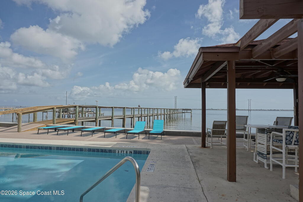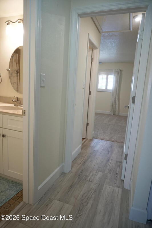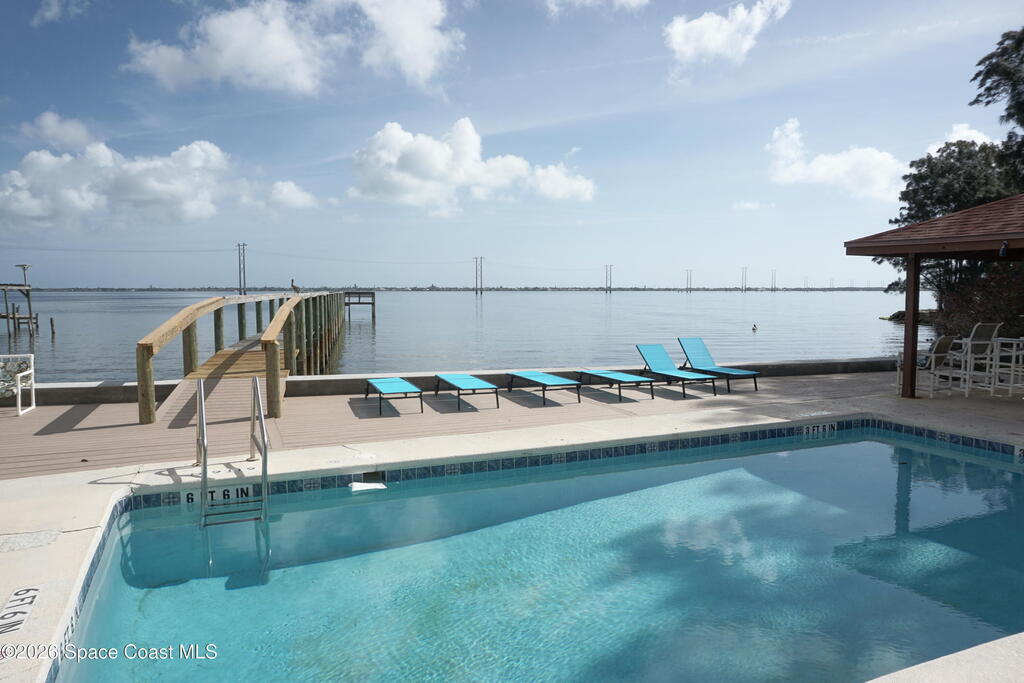 This 2 bedroom 2 bathroom home with a bonus loft sets you right on the Indian River, with great views from your living room, bedroom & screened in back porch. If that's not enough, go splash around in the community pool which is right on the water's edge and which gives you pier access/usage. If you want more of the beach feel with sand between your toes, just a few steps from your front door puts you at Castaways Point Park. This is a true everyday home that still gives you vacation feels and opportunities any day of the week. This well taken care of home is equipped with accordion hurricane shutters on the outside, plantation shutters instead of generic blinds on the inside, and brand-new carpet in the 2 bedrooms that has never been lived on. The kitchen is large and updated with quartz countertop, and even the skylight has plantation shutters so you can control the amount of light you want to let in. Turn the loft into whatever room best fits your family.