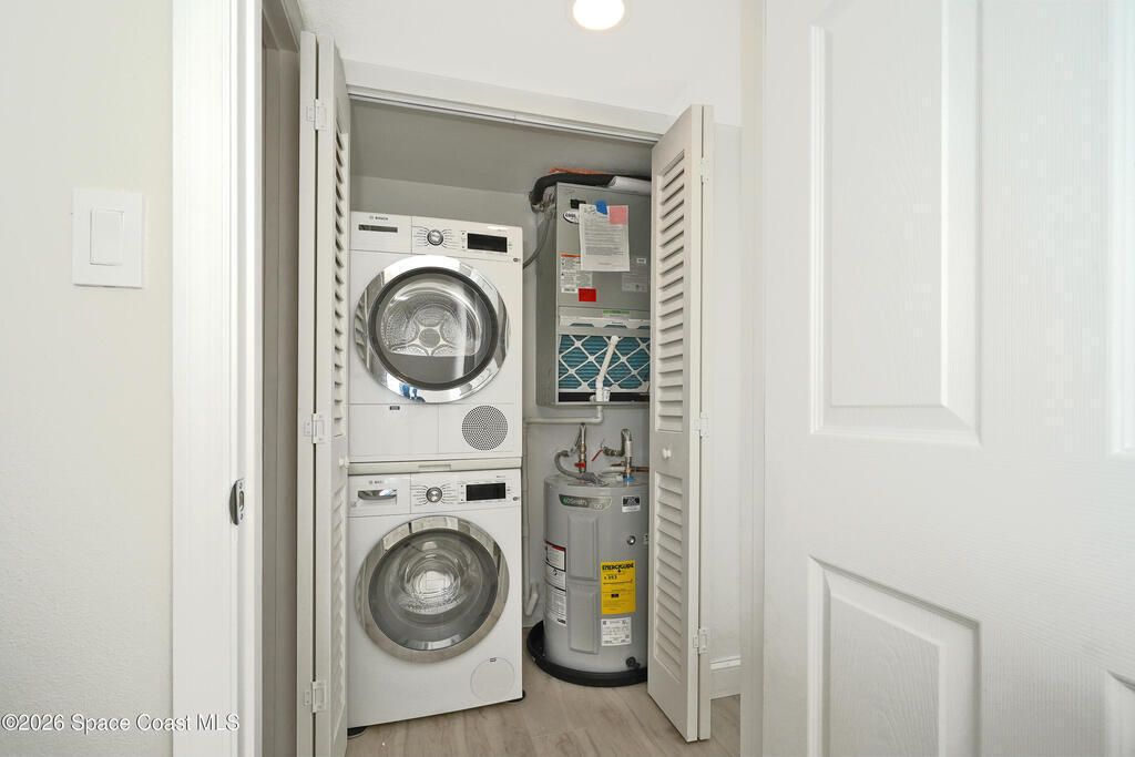 Dishwasher , Electric Range , Microwave , Plumbed For Ice Maker , Washer/Dryer Stacked