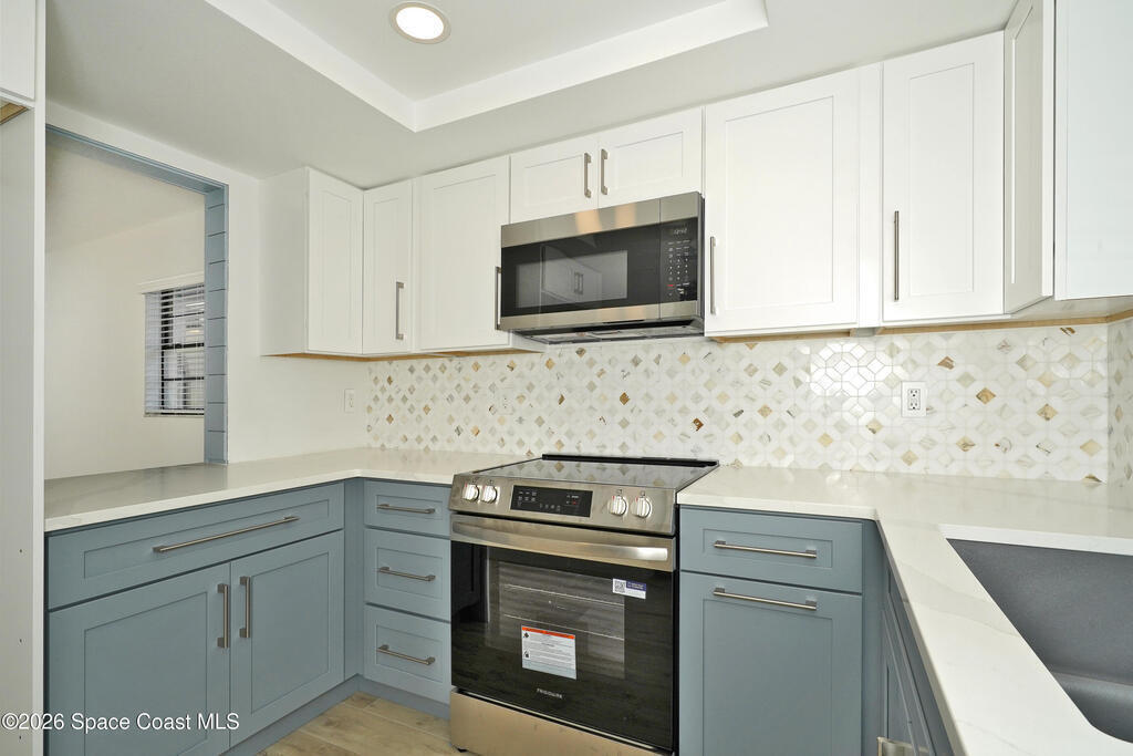 Beautifully renovated second floor unit is new from floor to ceiling and front to back, offering a new kitchen with stainless appliances, soft close cabinets a quartz countertop and decorative backsplash. Just off the kitchen is a minibar with cabinetry, shelving, and lighting. The dining area features a beautiful accent wall and modern lighting. Corner unit features additional windows for added lighting and two enclosed balconies with power and a storage closet. Bathrooms have been beautifully remodeled and include lighted vanities and modern fixtures. Luxury vinyl plank flooring throughout add to the low maintenance which also includes updated electrical, AC and water heater. Sun Isle is a 74-unit condo with only 27 private pool cabanas of which this unit owns one and is included in this sale. Community amenities include a pool, recreation area, car wash area and tennis/basketball court. Relax in a quiet neighborhood that is walking distance to dining, shopping and schools