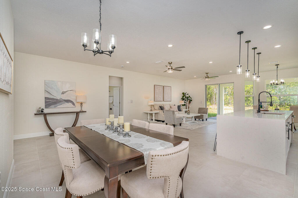 Every home has a story, but this one feels like it's been waiting just for you. Positioned on a desirable corner lot, its striking stone facade and inviting entrance create an instant sense of welcome. Step inside and you're surrounded by light and space, with soaring 9.4-foot ceilings and elegant 8-foot doors setting the tone for modern living.At the heart of the home, the kitchen takes center stage a nine-foot quartz island ready for morning coffee, holiday meals, and late-night conversations. Porcelain tile flows seamlessly throughout, leading you to the owner's suite where a spa-inspired bath with a freestanding soaking tub and walk-in shower offers the perfect escape.Quality details are everywhere from the premium water treatment system with reverse osmosis to the epoxy-coated garage floor and freshly painted porches designed for enjoying Florida's warm days.