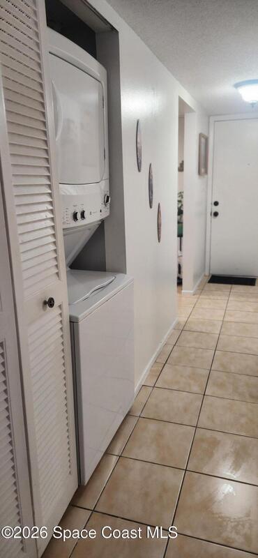 WELCOME TO THE BEACH! Newly remodeled clean and bright 2 bedroom with 1-1/2 ''Jack & Jill'' bathrooms, condo on a 5th floor with partial ocean view. New kitchen cabinets, countertop, refrigerator, dishwasher, microwave. Tiles, no carpet. With an elevator and screened balcony to enjoy the ocean breeze. In-unit Stackable washer & dryer. There are Storage room on a balcony and another storage unit outside near elevator. Garbage shut is on each floor. Hurricane shutters. Enjoy the amenities of the Tennis court, Clubhouse, Solar Heated Pool, Pickleball court, and Shuffleboard area. Covered assigned parking space for 1 car. In walking distance to the beach, restaurants, and shopping. Lease term and Furnishing are negotiable. Dogs allowed up to 35 lb, cats allowed.
