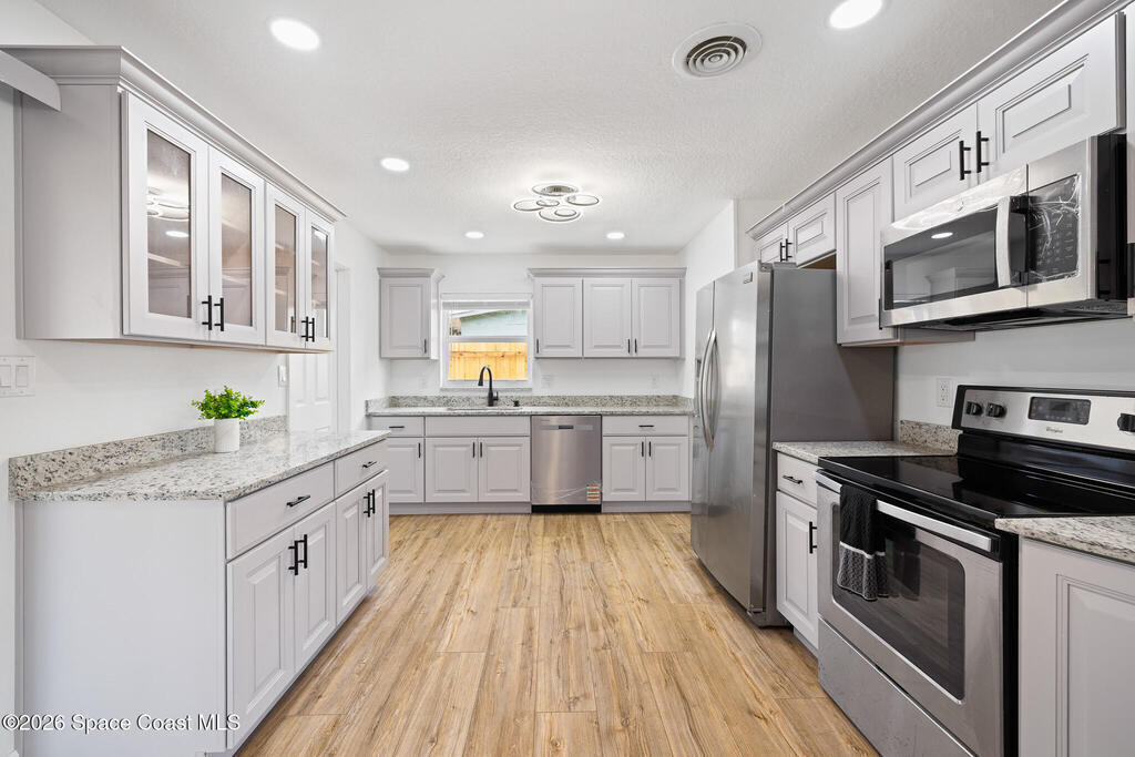 Tucked into a quiet neighborhood in Melbourne, this beautifully reimagined 3-bedroom, 2-bath single-family home has been completely transformed from the ground up. Every inch of the interior reflects thoughtful design and modern craftsmanship, starting with the open-concept layout that seamlessly connects the living, dining, and kitchen areas. Natural light pours in through NEW IMPACT WINDOWS, highlighting sleek flooring and clean, contemporary finishes.The kitchen serves as the heart of the home, featuring brand-new cabinetry, quartz countertops, and stainless steel appliances, perfect for both everyday living and entertaining. The spacious primary suite offers a private retreat with a fully updated en-suite bathroom, complete with elegant tile work and modern fixtures. Two additional bedrooms provide flexibility for family, guests, or a home office.