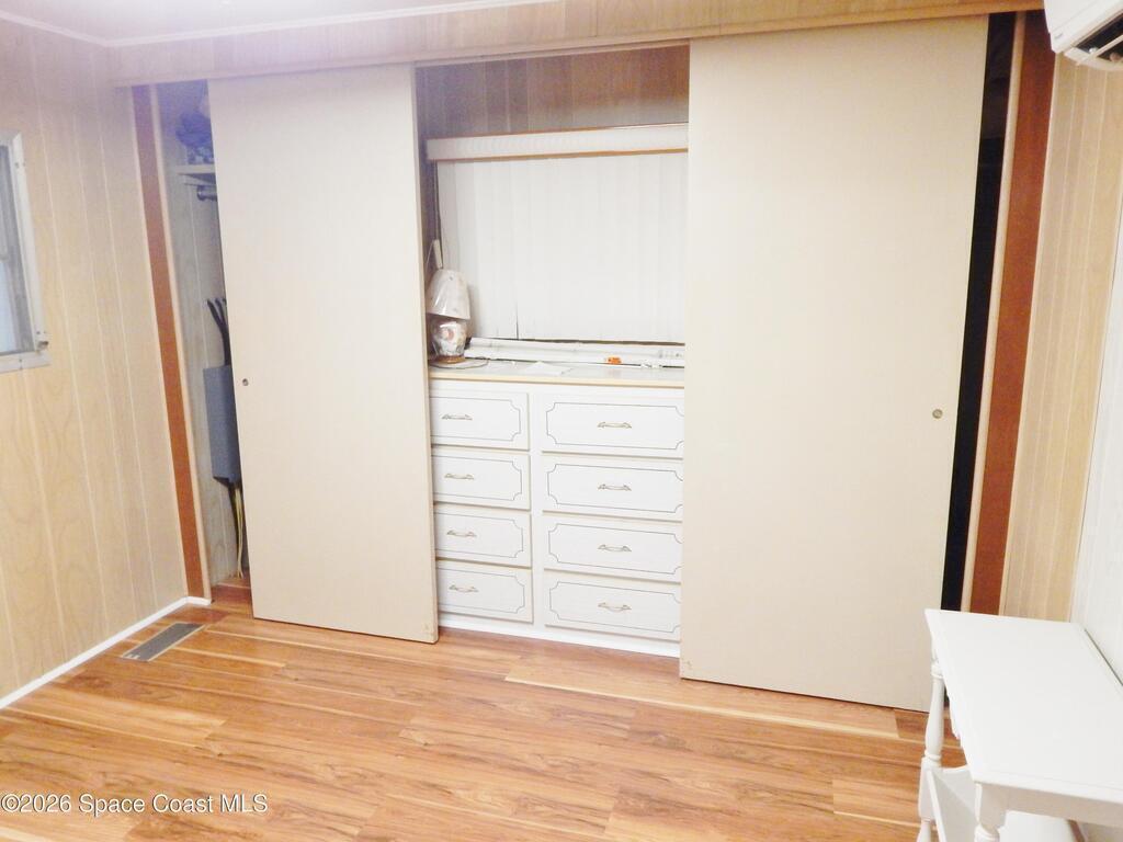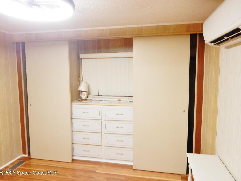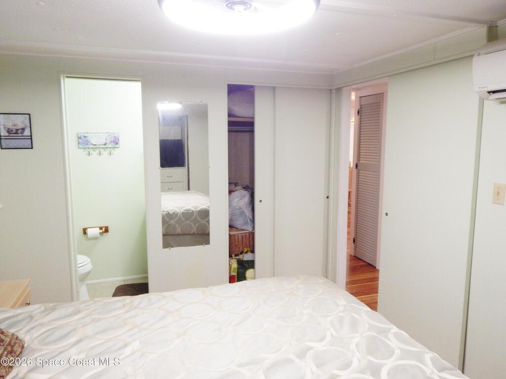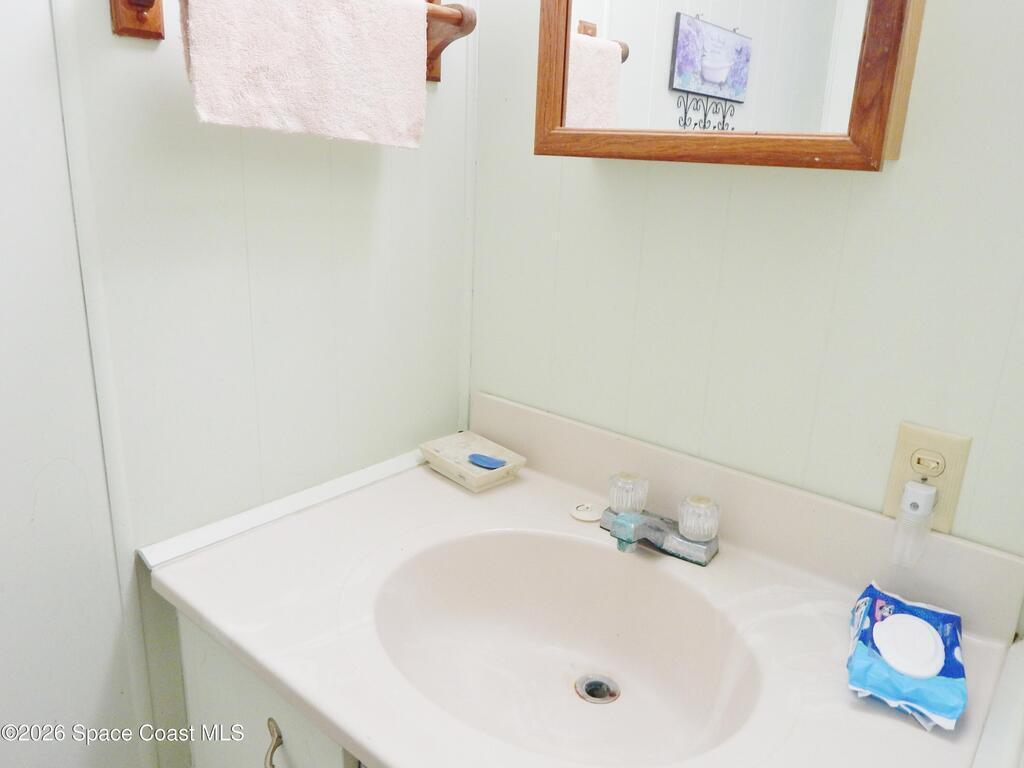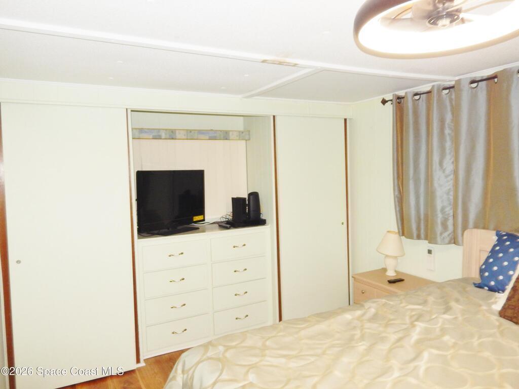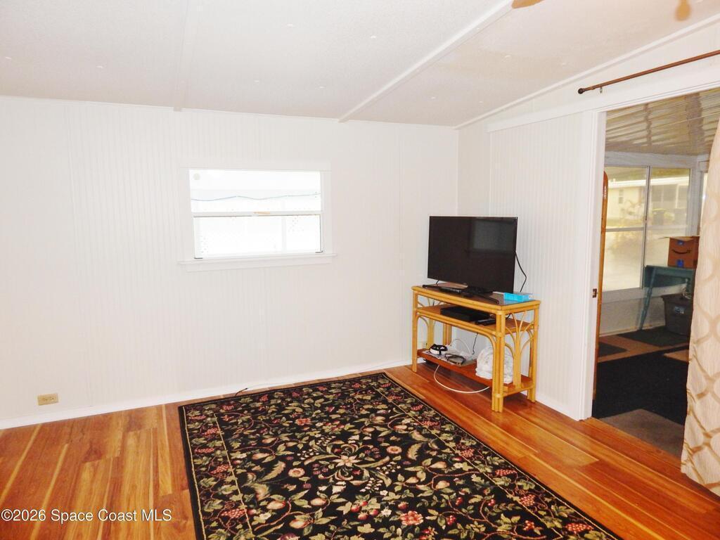 Move-in ready, spacious 2-bedroom, 1.5-bath home in Palm Bay Estates, a 55+ Waterfront Community. This double-wide manufactured home features a new kitchen with stainless steel appliances, an updated main bathroom with a walk-in shower, a new electrical box and service, and wood flooring throughout. The split A/C system was installed in 2022, along with a new roof. Under-counter kitchen lighting, fresh paint, ceiling fans, and new windows in key rooms give the home a modern look.Enjoy the community pool or activities in the clubhouse, which also features a full kitchen. Take a walk or drive your golf cart over to the water and have a picnic. Fish or relax, and enjoy the views of the Indian River. The HOA dues include lawn, landscaping, basic cable, internet, picnic area, pool, clubhouse, community boat dock, and boat ramp. Boat storage and RV parking are available for a fee, depending on availability. Make Palm Bay Estates your new home.