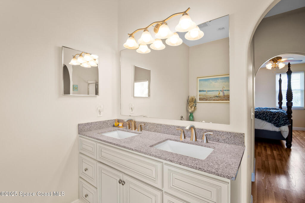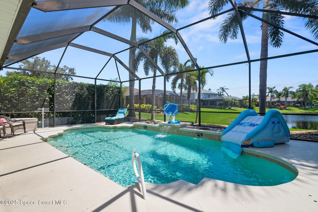 Welcome to this well maintained 4-bedroom, 3-bath home with a flex space/office, offering nearly 2,400 sq ft in sought-after Grand Haven.This light-filled, floor plan features a beautifully updated kitchen with soft-close cabinetry, granite countertops, kitchen Island, and a blend of porcelain tile and luxury vinyl plank flooring throughout the main living areas. Ample storage space.Step outside to your private screened saltwater pool overlooking the lake--perfect for relaxing or entertaining.Recent upgrades include energy-efficient windows, an insulated slider, granite vanities with dual sinks in both the primary and guest baths, a 2019 AC, and a 2018 roof.Enjoy low HOA fees and no CDD, with community amenities including a park, playground, basketball court, tennis/pickleball courts, and ball field.Conveniently located near beaches, Patrick Space Force Base, top-rated schools, shopping, dining, Melbourne Airport, and I-95.Seller is a licensed Florida real estate agent.