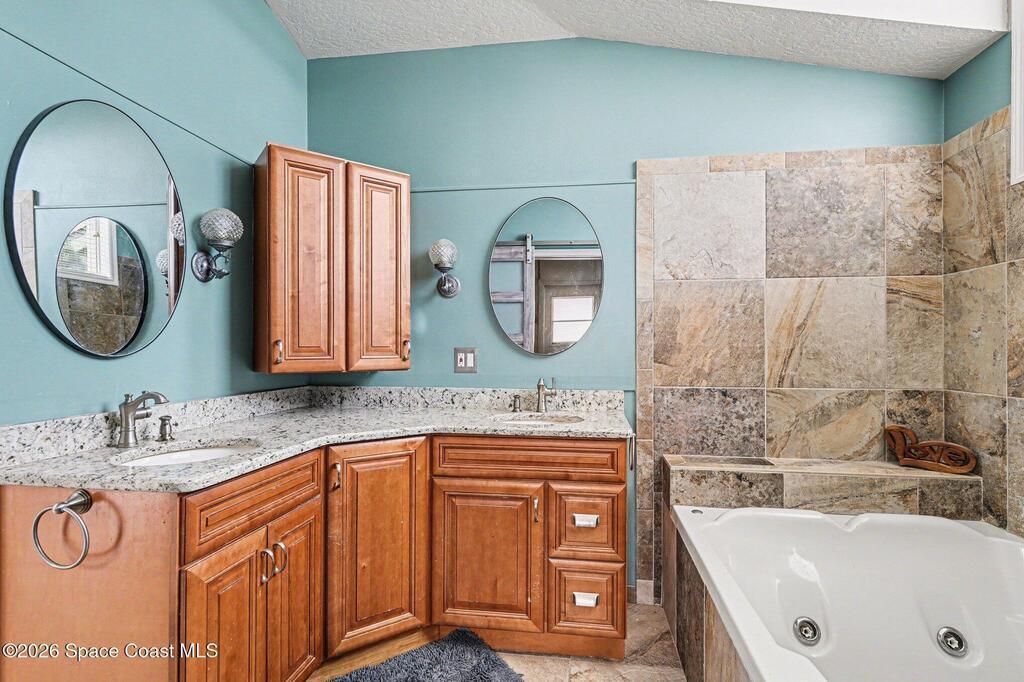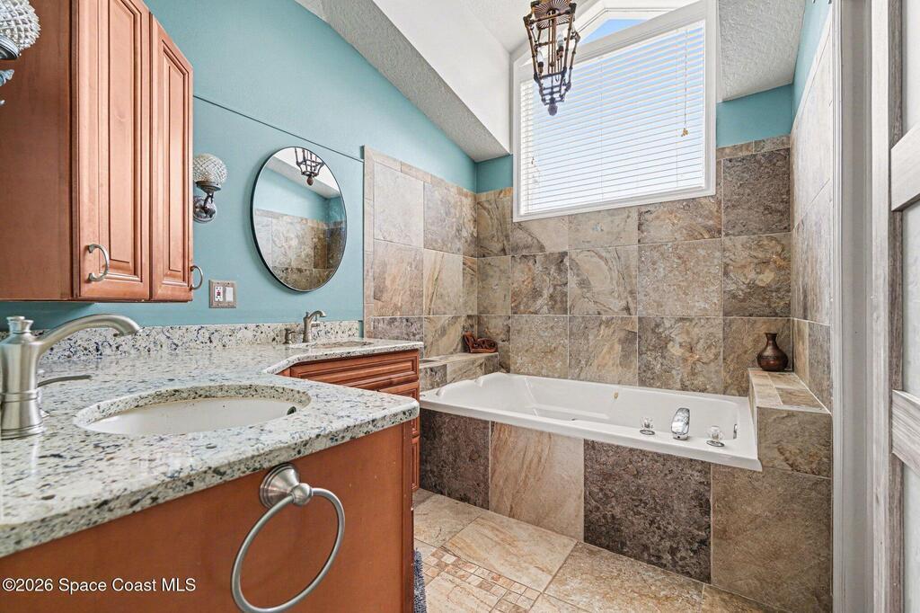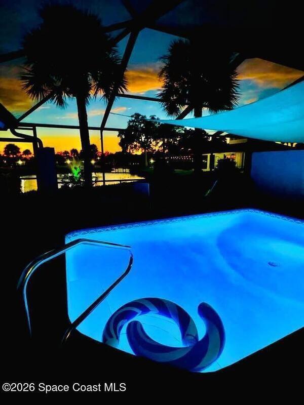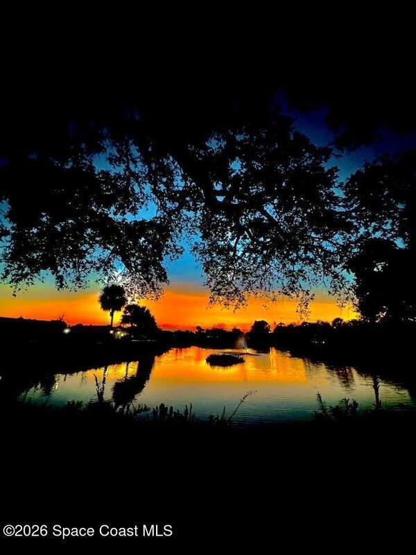 This waterfront corner lot--just steps from the clubhouse--is truly one of the finest homesites in Country Walk at Suntree. This beautifully maintained 3-bedroom, 2-bath pool home features a bright, open floor plan filled with natural light, showcasing stunning water views and breathtaking sunsets.The updated kitchen offers white cabinetry, granite countertops, a stylish tile backsplash, and newer appliances, including a glass-front, two-door refrigerator with a built-in beverage center. The spacious primary suite includes a walk-in closet and a private en-suite bath with oak cabinetry, a jetted tub, and a tiled walk-in shower.Porcelain tile flooring runs throughout the home, adding both elegance and durability. Additional upgrades include an air conditioned laundry room and a newer roof and skylight (2019).Step outside to your private oasis featuring a solar-heated pool, screened lanai and a fully equipped outdoor kitchen with sink and refrigerator, perfect for entertaining.