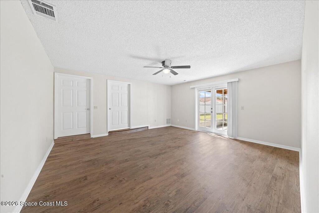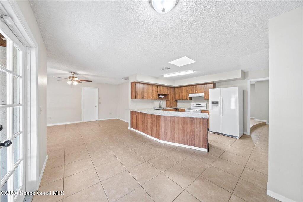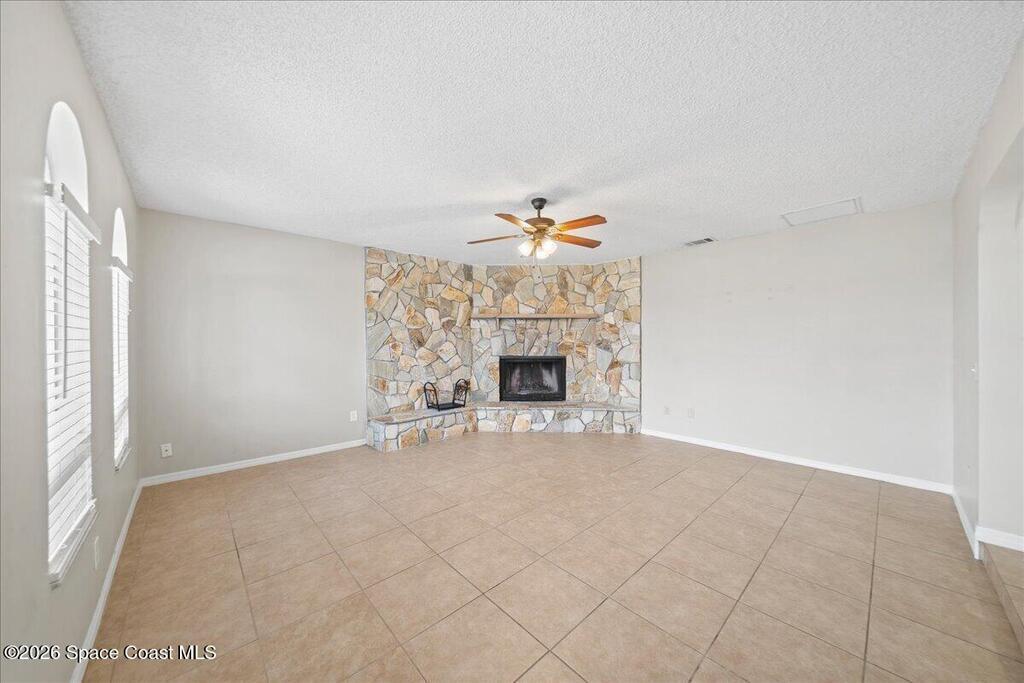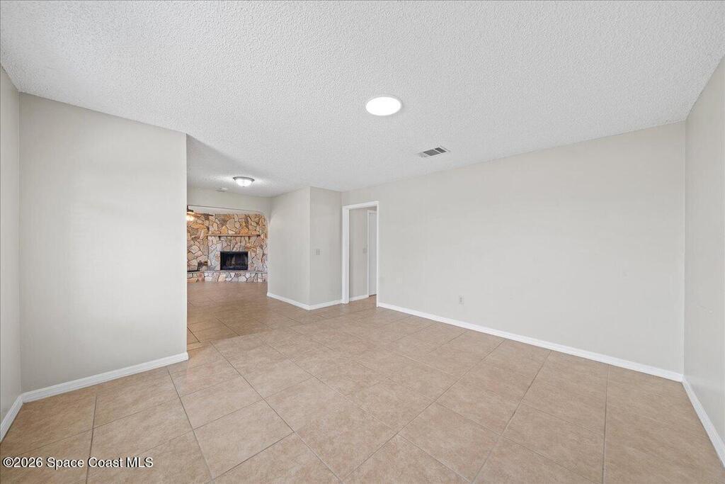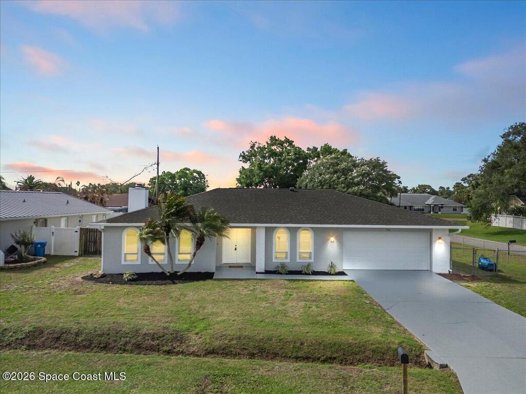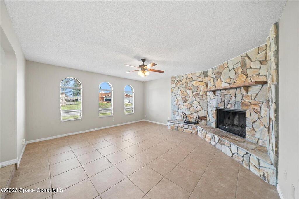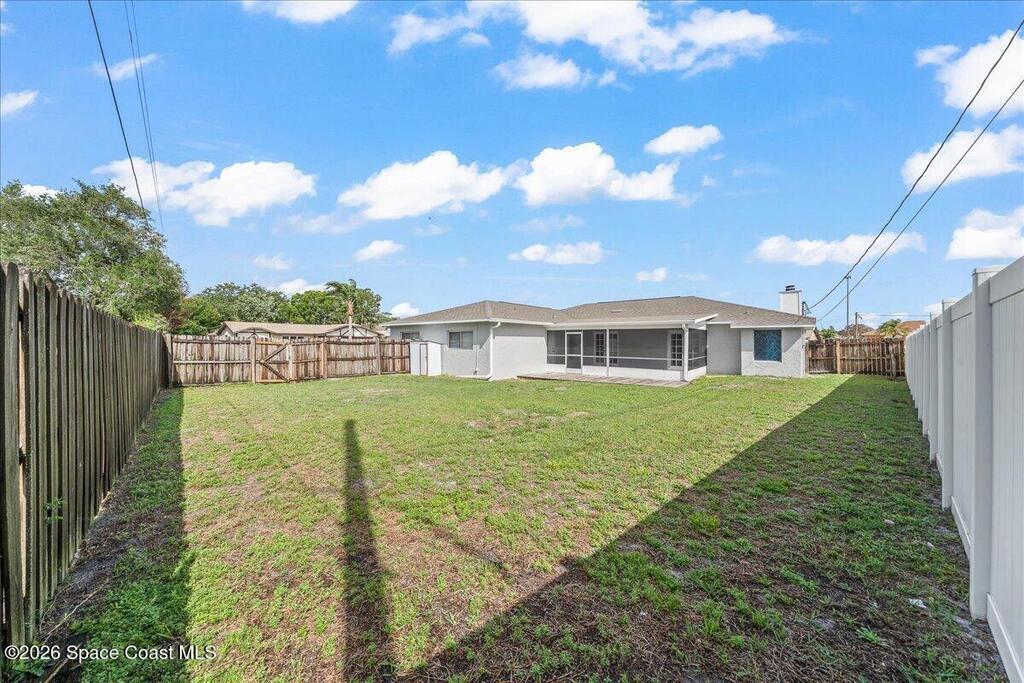 Move Right in to this Northeast Palm Bay Home on an Oversized Corner Lot - $309,900. Welcome to this incredible 4-bedroom, 2-bathroom home with a 2-car garage, perfectly situated on a spacious corner lot in NE Palm Bay. Fully fenced and offering city water, this property combines comfort, functionality, and style. Step through the impressive double-door entry into the foyer and with the formal living room on left, featuring a charming stone fireplace. Adjacent, on right is a generous dining area, seamlessly connected to the open kitchen with a breakfast nook. An additional sitting area offers flexibility as a den or flex space. The thoughtfully designed split-bedroom layout includes a large master suite with two walk-in closets, while three additional bedrooms are located on the opposite side of the home for privacy. Enjoy the convenience of an indoor laundry room and double-door access to a screened back porch--perfect for relaxing or entertaining.Additional highlights include: