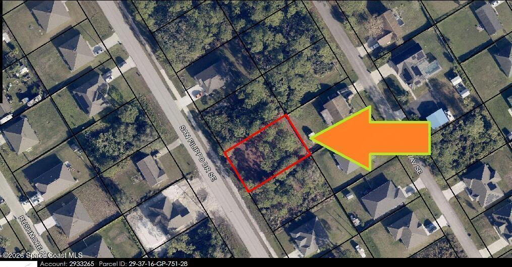 ** San Filippo Property ** 0.23 build-able residential lot (Rs2 Zoning) with city water available located in Port Malabar Unit #16. Sidewalks!!! Nicely located in the southeast section of Palm Bay near PGA Majors and Bayside Lakes Subdivision, this lot is just 1 miles -3 minutes-from Columbia Elementary School, 3.1 miles - 8 minutes to Publix Supermarket, 11.3 miles - 26 minutes to Melbourne International Airport, and 12.8 miles - 25 minutes to the beaches of Indialantic. From exit #173 of I-95 go west on Malabar Road NE for .2 miles, left on San Filippo Drive SE for 2.8 miles. The lot will be on your left.