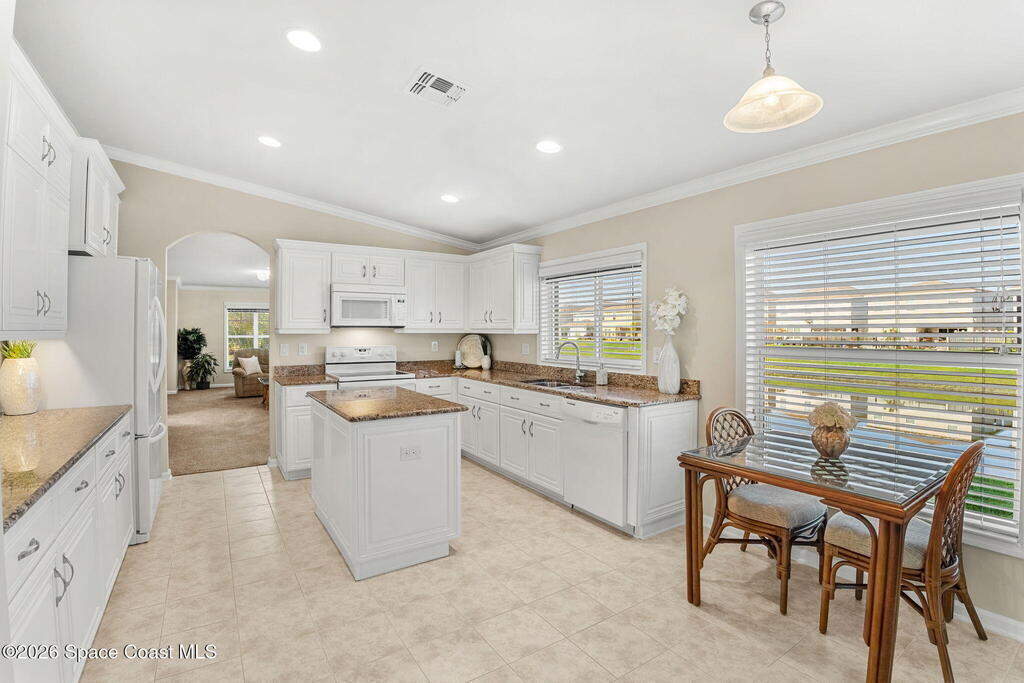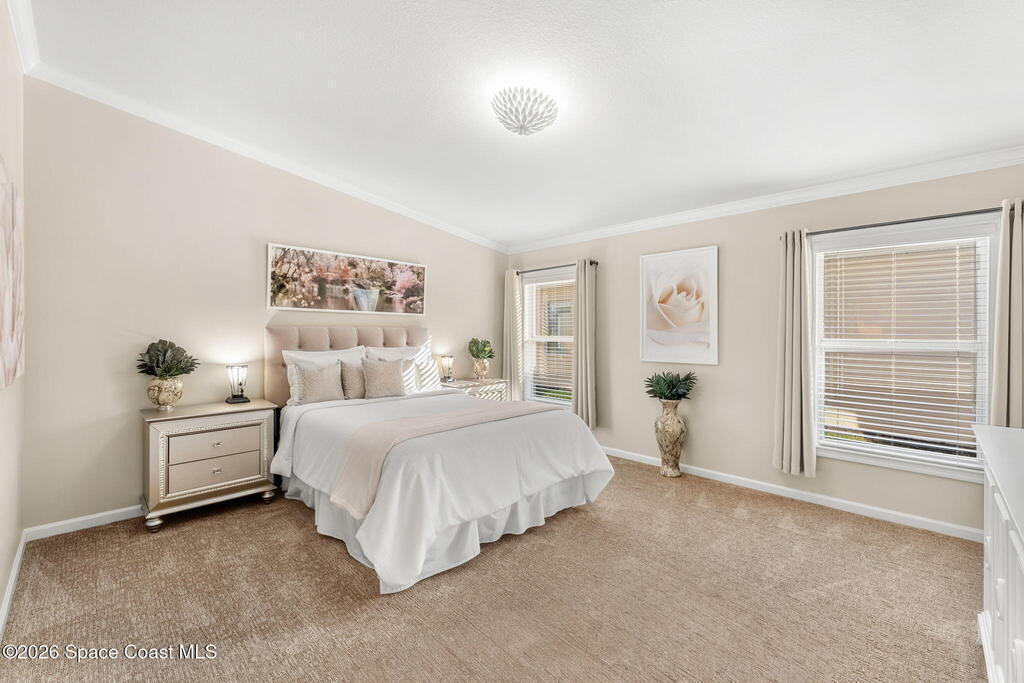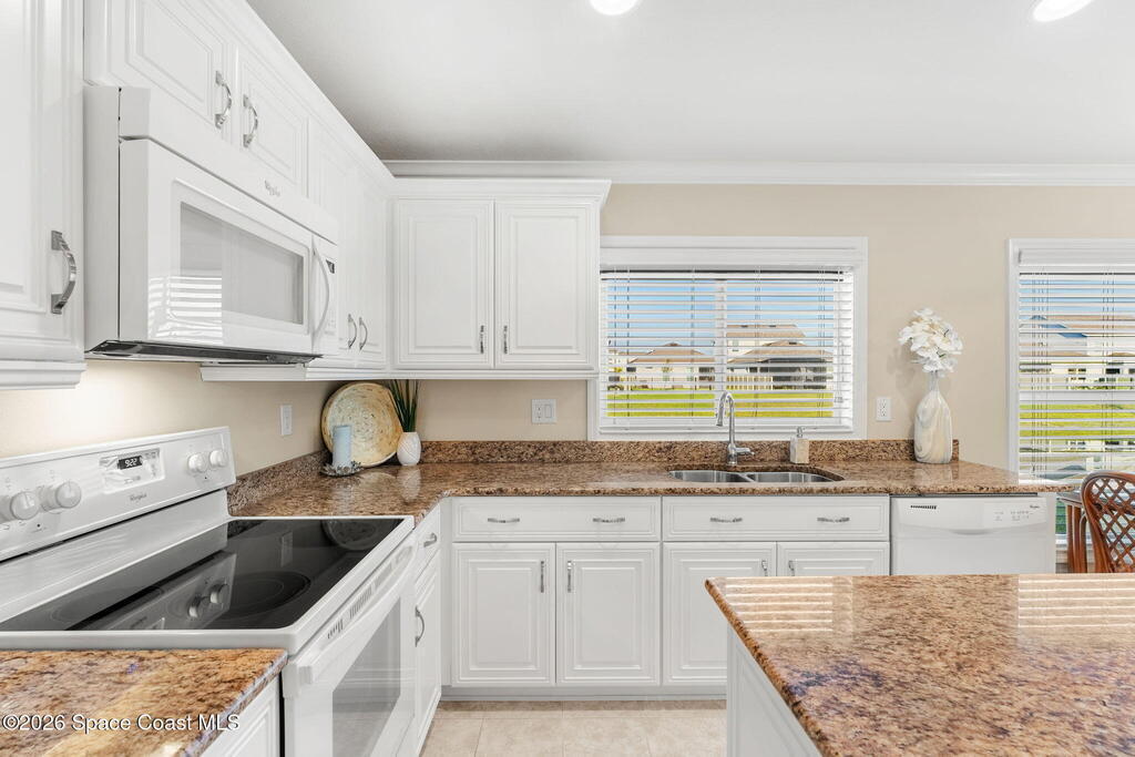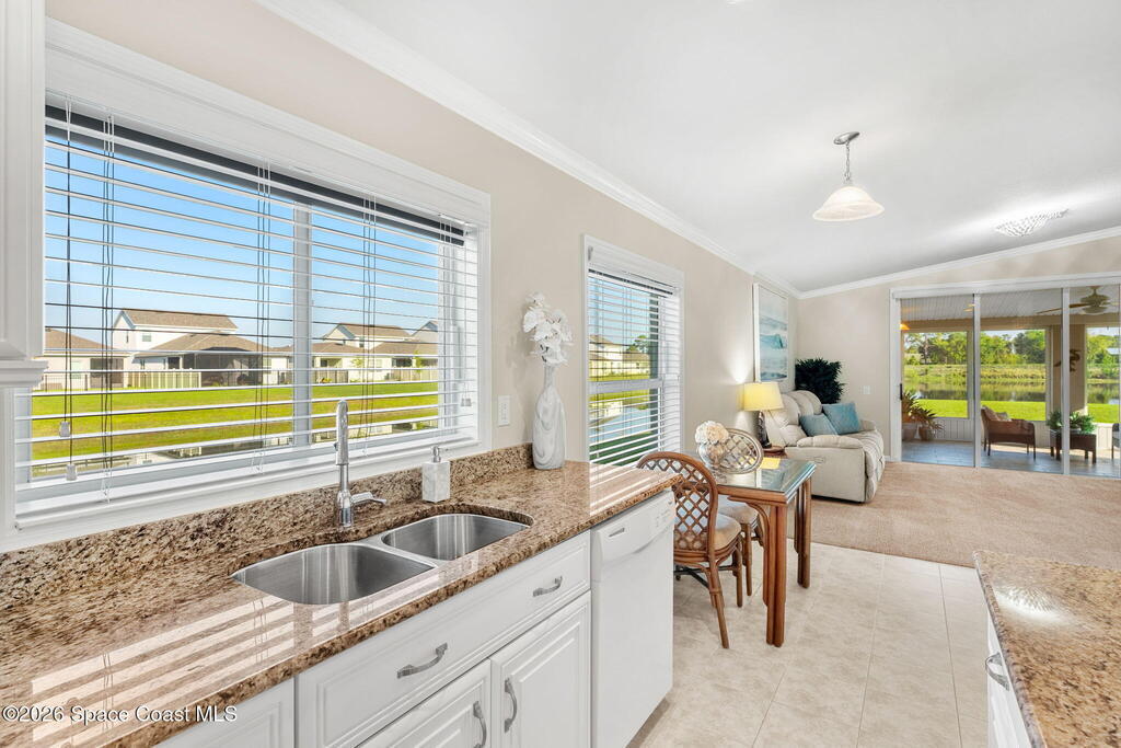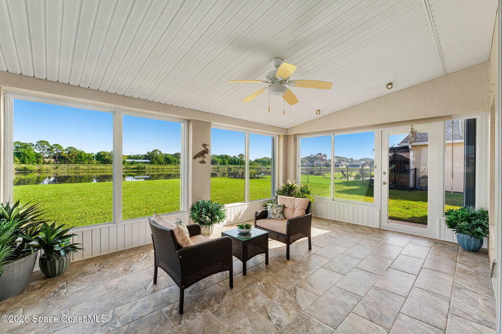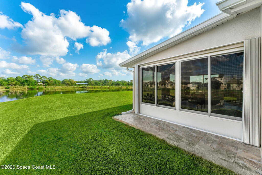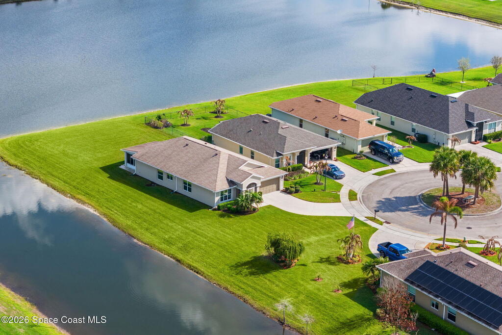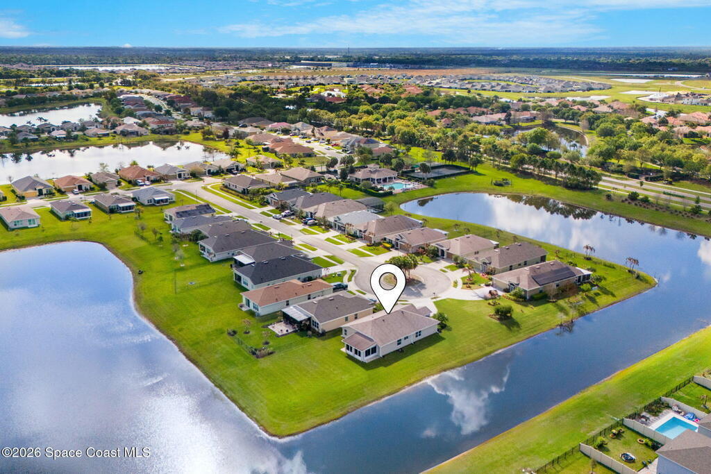 Tucked away on a quiet cul-de-sac in Heron Bay at Waterstone, this exceptional 4BR/2BA Waterfront home offers the ideal blend of serenity & everyday luxury you've been searching for! Rare wraparound waterviews offer a panoramic ''On The Water'' experience, like being aboard a ship, while vaulted ceilings, crown molding & an impeccably maintained interior create an elegant, inviting atmosphere. The spacious kitchen is the heart of the home, featuring abundant white cabinetry, granite counters, ample prep space, an island & charming eat-in area. The primary suite is a true sanctuary w/ expansive closets, dual sinks, a soaking tub & a walk-in shower. Enjoy year-round indoor-outdoor living in the custom-built Florida room, while the oversized backyard showcases water views. Interior & exterior solar shades plus full hurricane protection provide comfort & peace of mind. Roof: 2021, HVAC: 2022, W/H: 2025. Community Pool, Sports Court, Fitness Room & More! No CDD Fees. This is a Must See!
