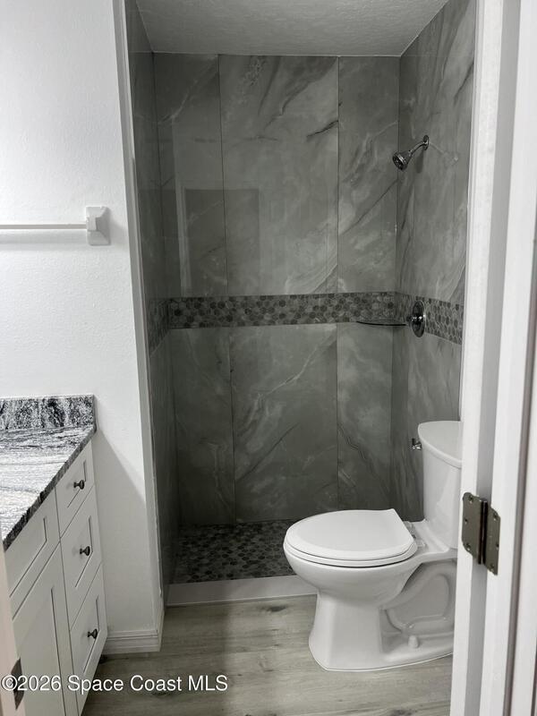 Tastefully renovated and clean as a whistle! NE Palm Bay home just across from waterfront homes on Turkey Creek. Luxury vinyl plank flooring throughout the home with the exception of the wet areas, updated kitchen and baths and an oversized two car garage with washer dryer hookup. Roof two years old, HVAC and water heater new. City water and sewer. This one will not disappoint!
