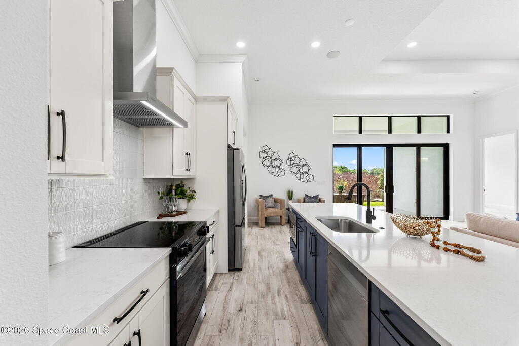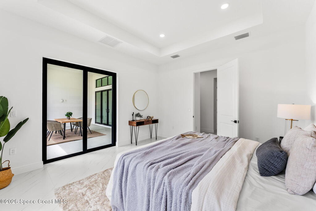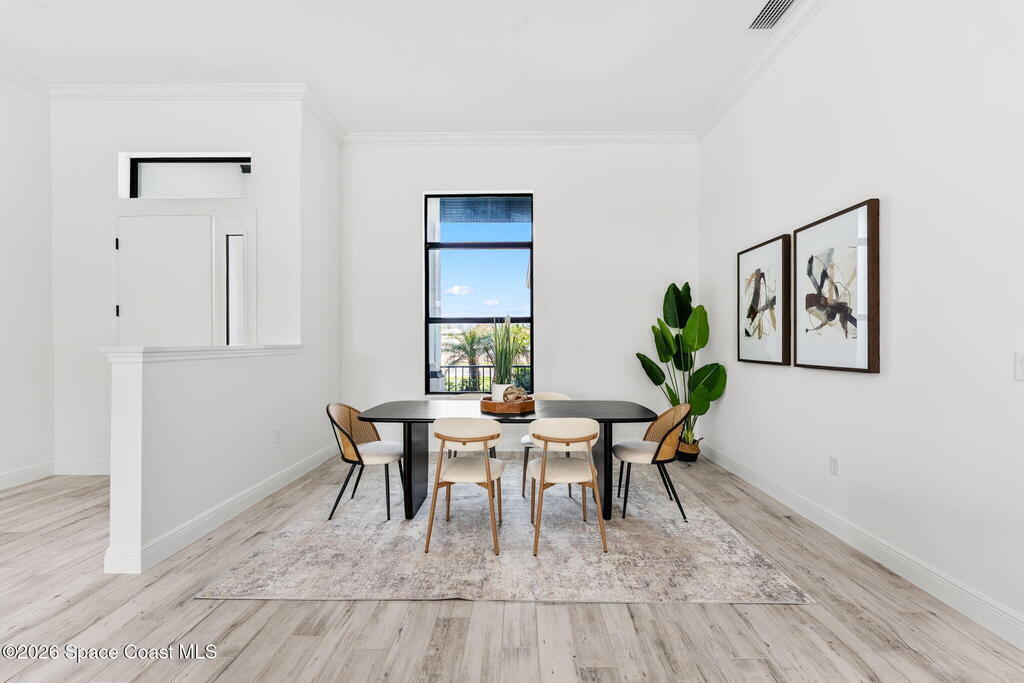 Poised along the Eau Gallie River, this newly constructed 4-bed, 3-bath residence offers a thoughtful balance of craftsmanship, comfort, & understated luxury across 2,400 sq ft. Framed by tranquil conservation views & complemented by a shared dock w/ the opportunity to secure a private boat slip, the setting invites a seamless connection to the water. W/in a gated enclave defined by manicured grounds, green space, & resort-style amenities, the home reflects a refined approach to modern living, featuring 10' ceilings, 8' six-panel doors, impact windows, plank tile flooring, & a well-appointed kitchen w/ premium appliances & soft-close cabinetry. Spa-inspired baths w/ floor-to-ceiling tile enhance the sense of retreat, while a pavered driveway & fresh landscaping create a polished first impression. The backyard offers both privacy & potential, w/ room for a pool or expanded outdoor living overlooking the river. Just moments from Eau Gallie Arts District, beaches, Melbourne Airport & I-95