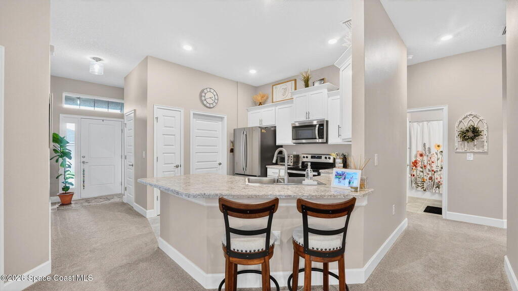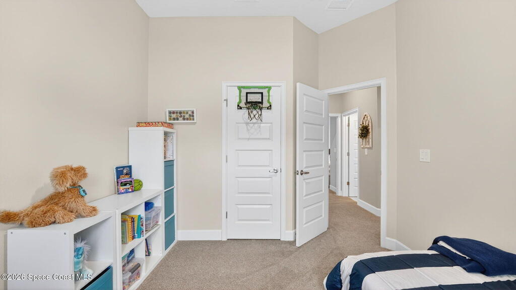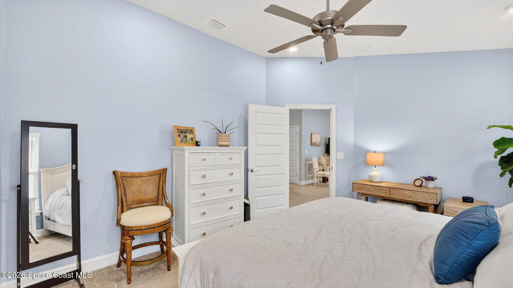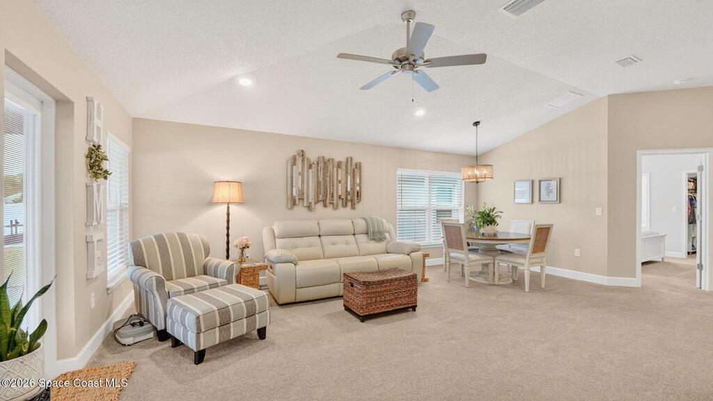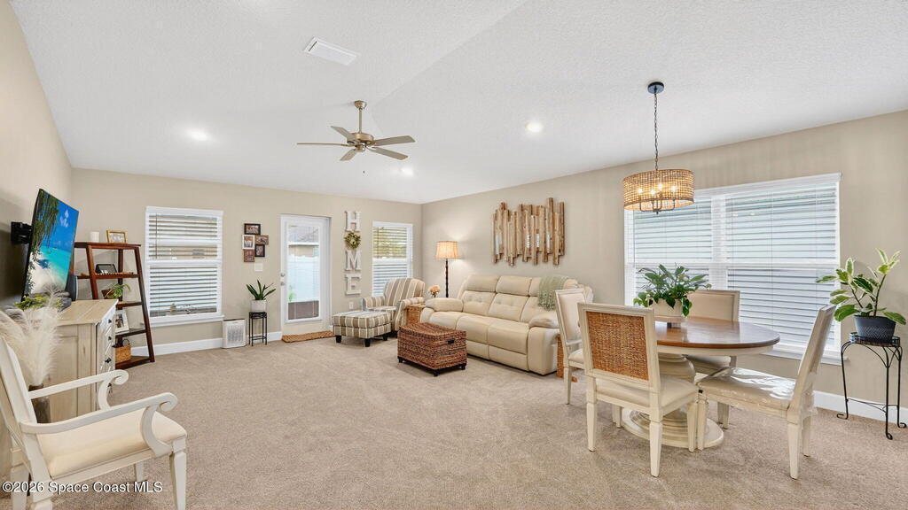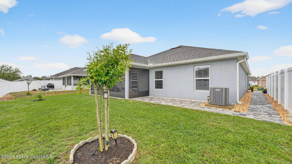 Impeccably Maintained 4 Bedroom Home in Hickory Ridge. Built in 2023, but it Looks Brand New! This Split Floorplan Has Soaring Ceilings, Neutral Finishes & Upgrades! Fantastic Layout with Open Kitchen, Dining & Living Areas. Master Suite has a Walk-In Closet, Double Sinks & Shower w/ Glass Doors. Three More Spacious Bedrooms and Shared Full Bath. The 20x8 Patio was Screened In, Double Ceiling Fans & Shark Coated Floors (Also, in garage and front entry). Extended Paver Driveway & Sidewalks Installed Plus Lush Landscaping! Centrally Located Just Minutes From KSC, Beaches & Orlando! This Low Maintenance Home is Turn Key & Ready to Move-In!