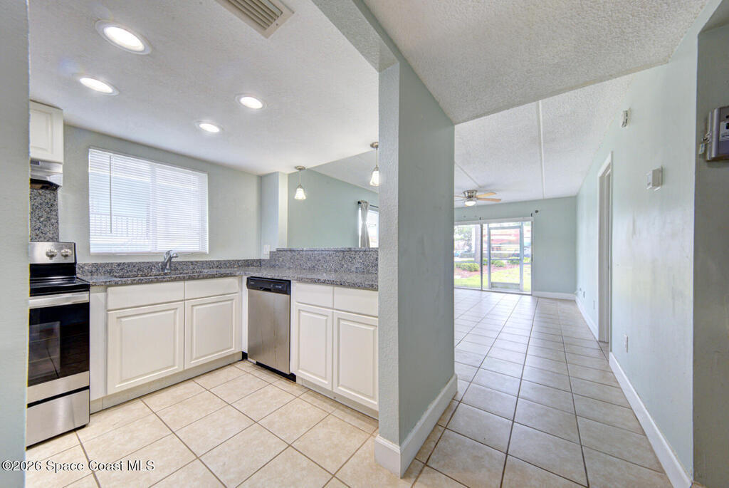 Step inside this charming home to discover a comfy, functional floor plan. Many big-ticket items have been improved, beginning w/ the new granite counters, ss appliances, pendant lighting, new cabs, slow-close drawers & a updated TANKLESS water heater & A/C. This corner unit produces an expansive feel w/ additional light that flows through to create an open, airy atmosphere & has tile flooring throughout. Exquisite waterfront views throughout the community, overlook the Eau Gallie River & offers an authentic FL lifestyle w/ a community dock for kayaking, paddleboarding & boat access. The CBS construction offers incredible value w/ a convenient location that is just a skip away from US-1, local parks, dining, Melbourne International Airport, historic downtown, shopping, the Indian River, Brevard beaches & offers the ability to watch rocket launches close-up, from the comfort of home. W/ a hard-to-find price point, this property is a truly unique find & is definitely priced to move fast!
