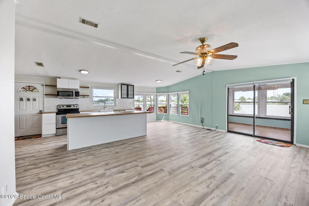 Welcome to your waterfront oasis in Forest Lakes of Cocoa! Located in a desirable 55+ community where you OWN the land, this move-in ready 2 bed, 2 bath home offers 1,010 sq ft and sits on one of the nicest lots in the neighborhood. Enjoy stunning water views from nearly every window. Features include an updated kitchen and bathrooms, brand new 2025 roof, and a freshly painted deck perfect for relaxing or entertaining. Outdoor highlights include a covered porch and carport. Forest Lakes offers great amenities including a community pool, clubhouse, shuffleboard, and boat ramp with an active social calendar. Conveniently located less than a mile from I-95, providing easy access to shopping, dining, and the beaches. Don't miss this rare waterfront opportunity!