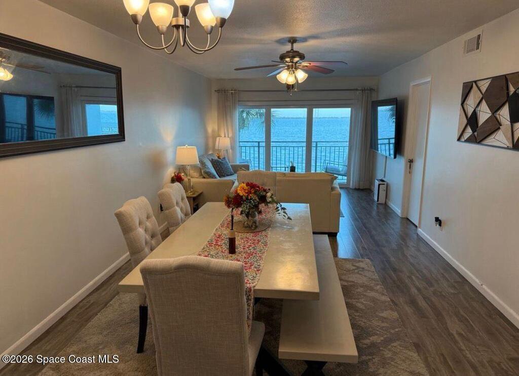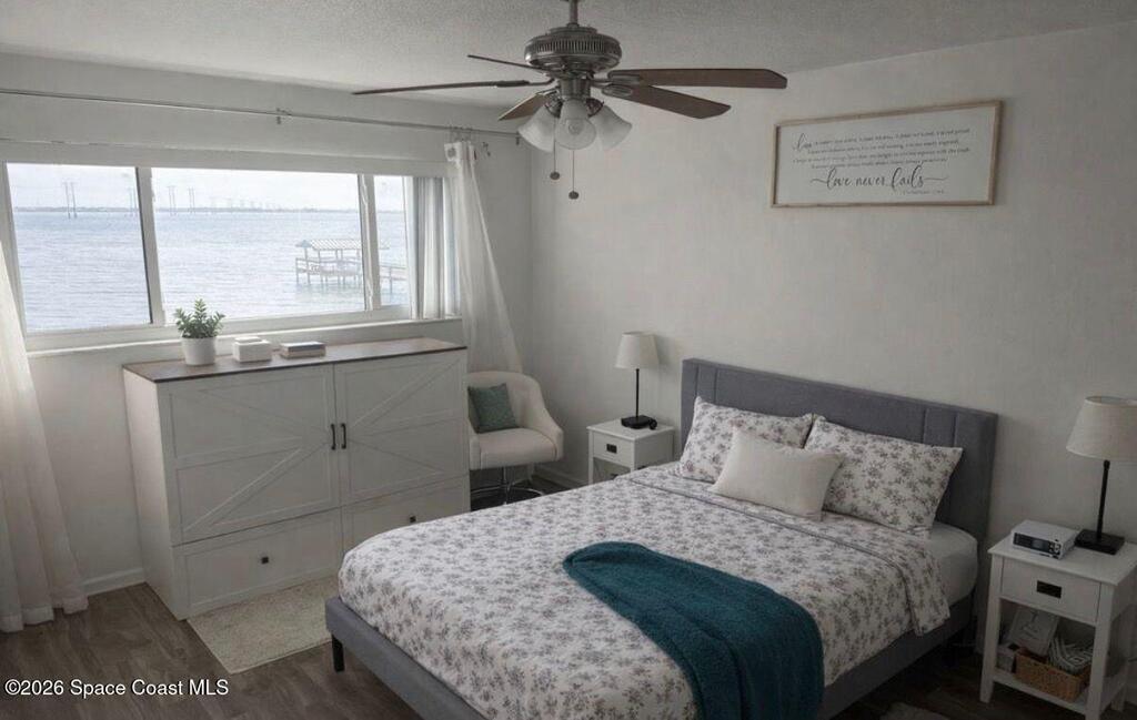 Welcome to this beautifully updated first-floor riverfront condo with stunning water views the moment you walk in. Light and open layout with direct river sightlines creates a peaceful and inviting setting. The kitchen features granite countertops, center island, r, soft-close drawers and recessed lighting, ideal for everyday living & entertaining. Wood-look tile flooring runs throughout for a clean, modern feel. Split floor plan offers 2 spacious bedrooms for added privacy. The primary suite includes a walk-in closet with built-in storage shelves and a large window overlooking the river, with a beautifully remodeled bathroom. Additional features include indoor laundry with washer and dryer, private storage in the lobby, secured lobby access, and one assigned carport space. Community amenities include a pool and pier for true waterfront living. Rent Includes Water, Sewer, Cable and Internet.