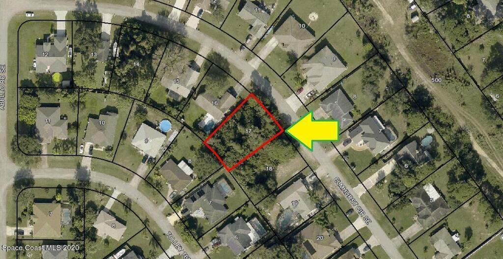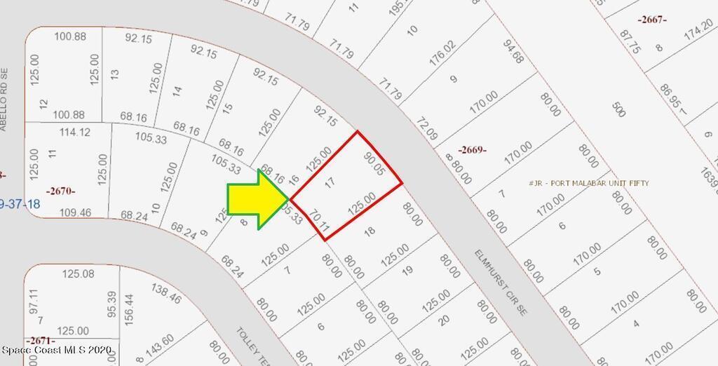 1 of 2 side-by-side adjacent single family residential lots (Rs2 Zoning) with city water available located in the highly sought after Port Malabar Unit #50 of Palm Bay. Nicely located in the SE Section, this lot is just 1.5 miles -5 minutes- to Publix Shopping, 2.4 miles -7 minutes- to Bayside High and WestSide Elementary Schools, 13.3 miles -31 minutes- to the Melbourne Int'l Airport, and just 15.2 miles -34 minutes - to the beaches of Indialantic. From Exit #173 of I095 go west on Malabar Road SE. Turn left on Eldron Boulevard,right on Godfrey Road, left on Hammock Road SE, and right on Elmhurst Circle. Proceed to 1562 and 1572 Elmhurst on your left. Purchase both lots for more privacy or a larger home.