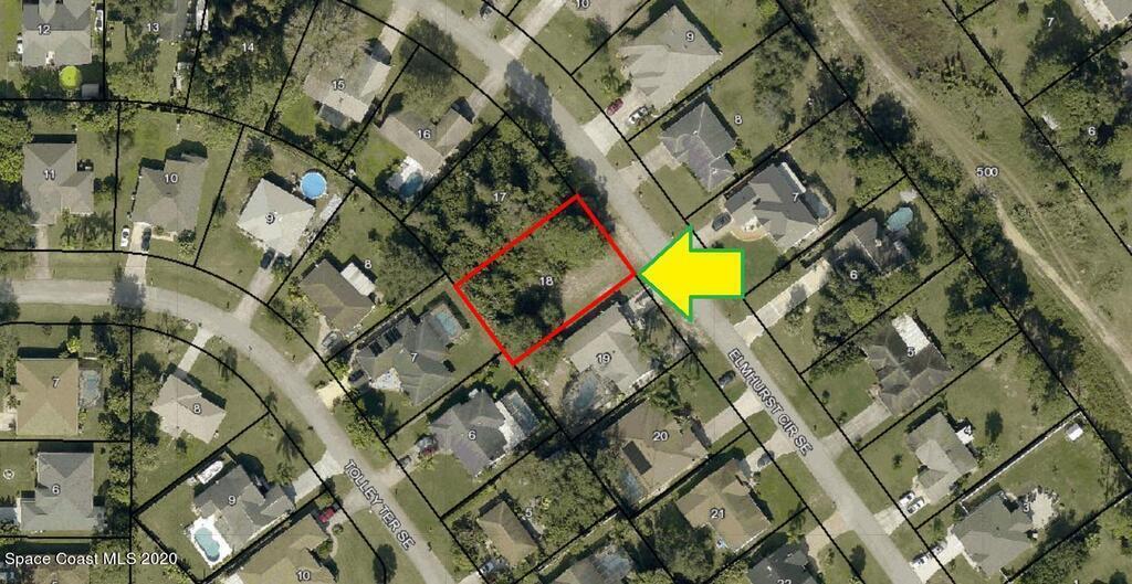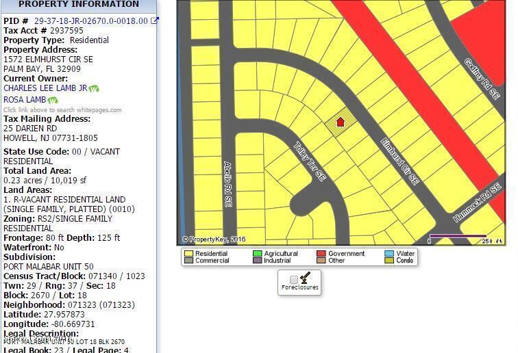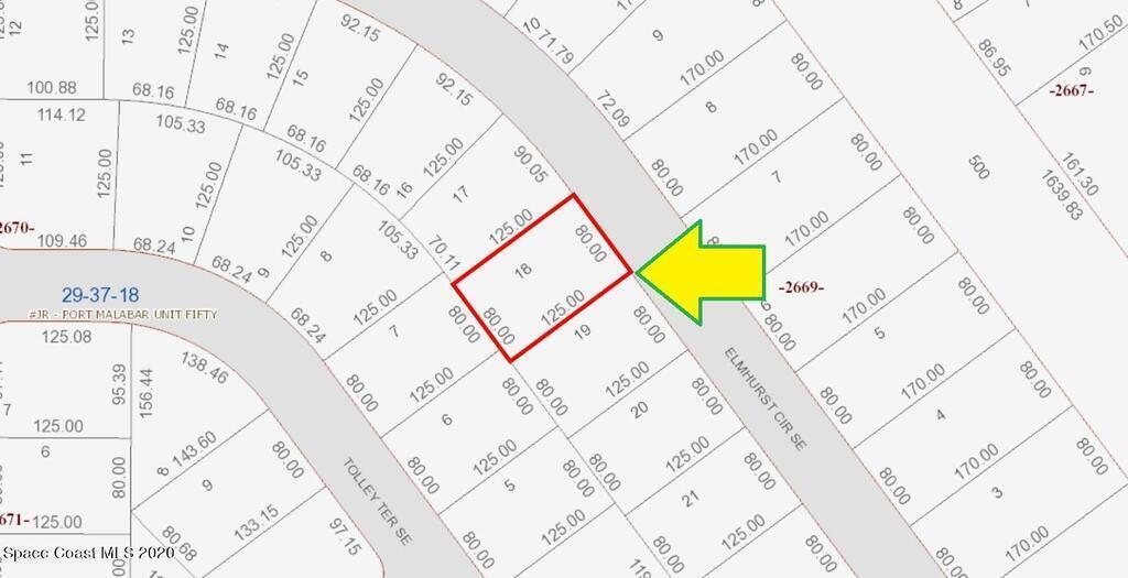 1 of 2 side-by-side adjacent single family residential lots (Rs2 Zoning) with city water available located in the highly sought after Port Malabar Unit #50 of Palm Bay. Nicely located in the SE Section, this lot is just 1.5 miles -5 minutes- to Publix Shopping, 2.4 miles -7 minutes- to Bayside High and WestSide Elementary Schools, 13.3 miles -31 minutes- to the Melbourne Int'l Airport, and just 15.2 miles -34 minutes - to the beaches of Indialantic. From Exit #173 of I095 go west on Malabar Road SE. Turn left on Eldron Boulevard,right on Godfrey Road, left on Hammock Road SE, and right on Elmhurst Circle. Proceed to 1562 and 1572 Elmhurst on your left. Purchase both lots for more privacy or a larger home.