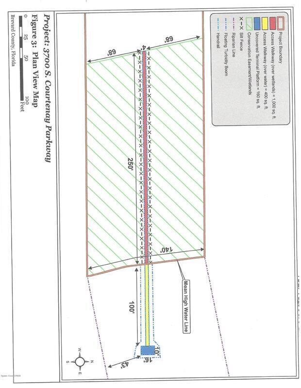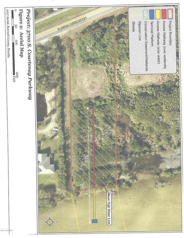 Direct Banana River front property with already developed .45 acre house pad, approximately 150' x 150', and private driveway in place, conservation easements on this property give it a natural wildlife preserve setting, lot has been permitted and developed and is ready to build your waterfront home. New permit from the FDEP & USACE authorizes the installation of a 250ft boardwalk through the wetlands and a 110ft pier into the Banana River. This property is on the east side of Courtenay Pkwy.