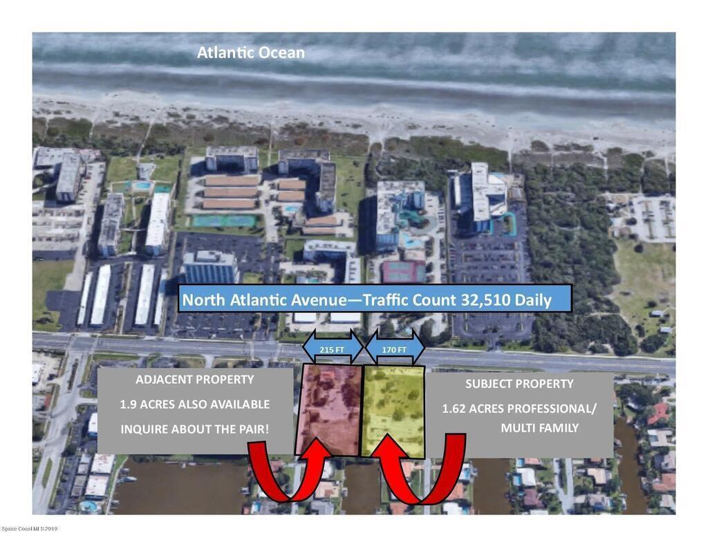 Professional/Multi-Family site is a 1.62 acre corner lot with 165 front feet on N Atlantic Avenue (30210 ADT) and 426 front feet on Jamaica Drive in Cocoa Beach, Brevard County, FL. Parcel ID: 25-37-03-00-00761.0-0000.00 / Tax Account: 2513824 / RE Tax: $6,237. Cocoa Water / Cocoa Beach Sewer are available to the site alongAtlantic Avenue. Cocoa Beach RM-2 Multi-family Professional District / High Density Residential and Professional Land Use Uses Include: Multi-family / ProfessionalOffice / Church / Community Residential / Mixed Use / Day Care / ACLF The area surrounding the property consists primarily of multi-family housing (apartments and condominiums), resort hotels, small business, and single familyhomes.
