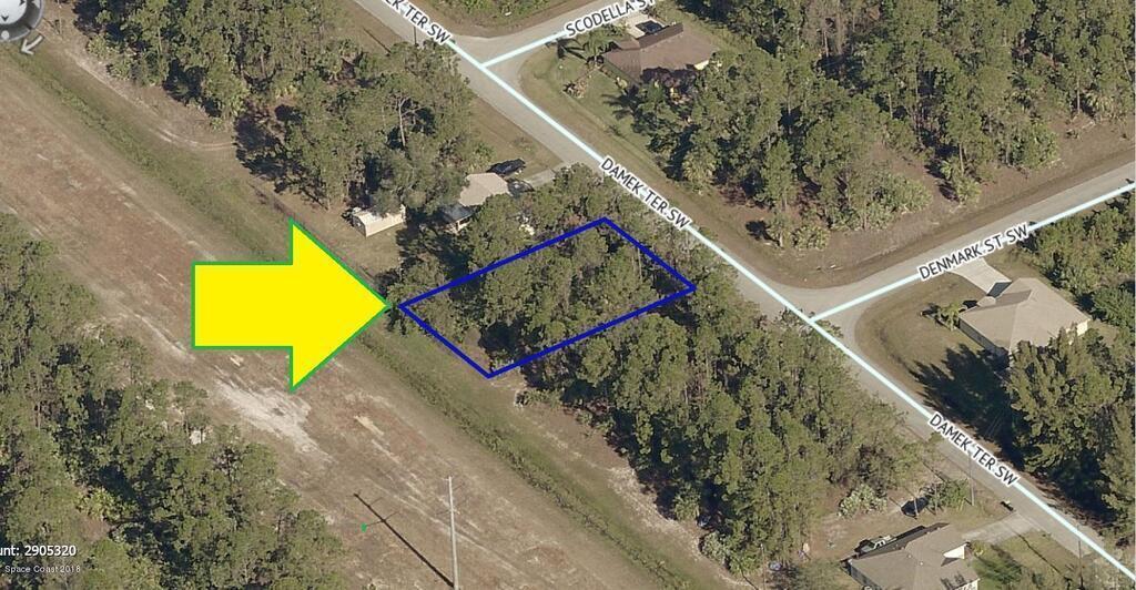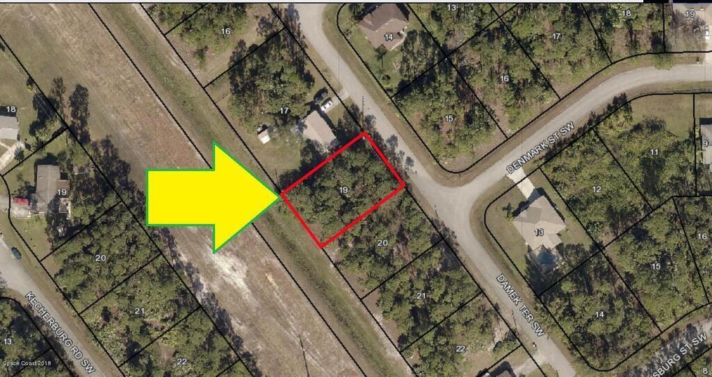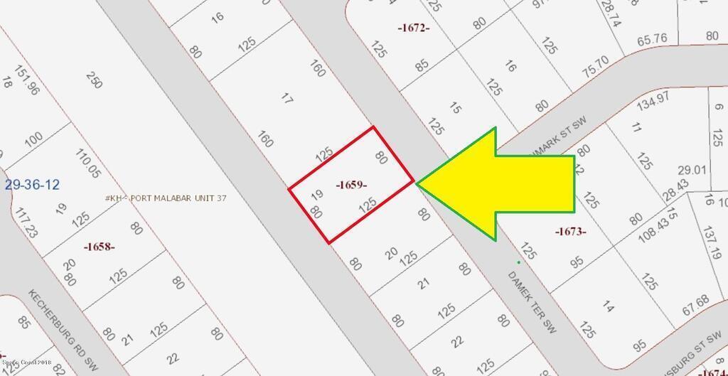 0.23 acre build-able residential lot available in Port Malabar Unit #37 of Palm Bay. This is one of 2 side-by-side adjacent lots being sold (850 Damek is also for sale). Located in the southwest section, this lot has a drainage canal in the back, allowing more privacy, and is just 1.5 miles - 4 minutes to Jupiter Elementary School, 2.3 miles - 5 minutes to the Winn Dixie Supermarket, 11.8 miles - 25 minutes to Melbourne International Airport, and 14.5 miles - 28 minutes to the beaches of Indialantic. From exit #176 of I-95 go west on Palm Bay Rd NE for .7 miles, left on Minton Rd for 3.3 miles, right on Jupiter Blvd SW for .2 miles, left on Santo Domingo Ave SW for .5 miles, right on Scodella St SW for .6 miles, and left on Damek. The lot will be on your right.Buy one lot or both!