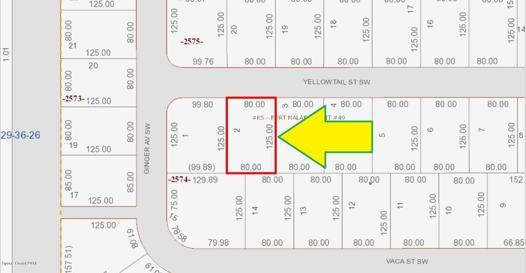 0.23 acre buildable residential lot available in Port Malabar Unit 49 of Palm Bay. Located in the southwest section, this lot is just 2.8 miles - 7 minutes to Bayside High School, 4.2 miles - 10 minutes to Publix Supermarket, 15.8 miles - 31 minutes to Melbourne International Airport, and 18.8 miles - 35 minutes to the beaches of Indialantic. From exit #176 of I-95 go west on Palm Bay Road NE for .7 miles, left on Minton Road for 3.3 miles, right on Jupiter Boulevard SW for .1 mile, left on DeGroodt Road SW for 3.3 miles, right on Osmosis Drive for 1.0 mile, left on Madden Avenue for .8 miles, and right on Yellowtail Street. The lot will be on your left.