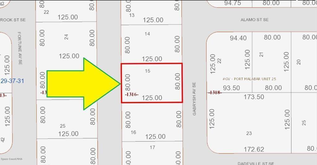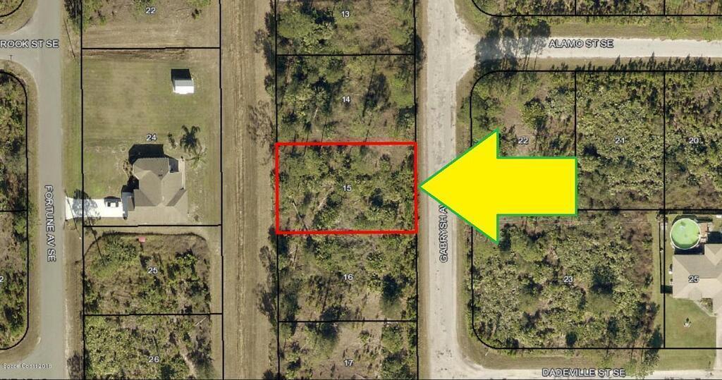 0.23 acre build-able single family residential lot available in Port Malabar Unit #25 of Palm Bay. Located in the southeast section, this lot has a drainage canal in the rear, allowing more privacy, and is just 2.9 miles - 5 minutes to Bayside High School, 4.0 miles - 8 minutes to Publix Supermarket, 14.4 miles - 27 minutes to Melbourne International Airport, and 16.2 miles - 29 minutes to the beaches of Indialantic. From exit #173 of I-95 go west on Malabar Road NE for .2 miles, left on San Filippo Drive SE for 6.8 miles, and right on Gabrysh Avenue. The lot will be on your left.