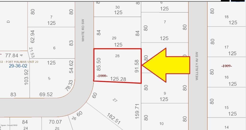 Over-sized 0.26 acre build-able single family residential lot available in Port Malabar Unit #20 of Palm Bay. Located in the southwest section, this lot is just 1.0 mile - 3 minutes to Jupiter Elementary School, 1.4 miles - 4 minutes to the Winn Dixie Supermarket, 11.4 miles - 24 minutes to Melbourne International Airport, and 13.9 miles - 29 minutes to the beaches of Indialantic. From exit #176 of I-95 go west on Palm Bay Road NE for .7 miles, left on Minton Road for 2.5 miles, right on Malabar Road for 1.4 miles, and left on White Road. The lot will be on your left.