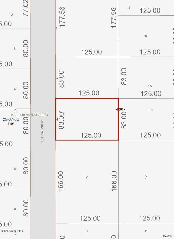 This is a single lot great for a home in Palm Bay. 83 x 125. Easy owner financing is available. Full price offer only. Price may change without notice Please call to confirm