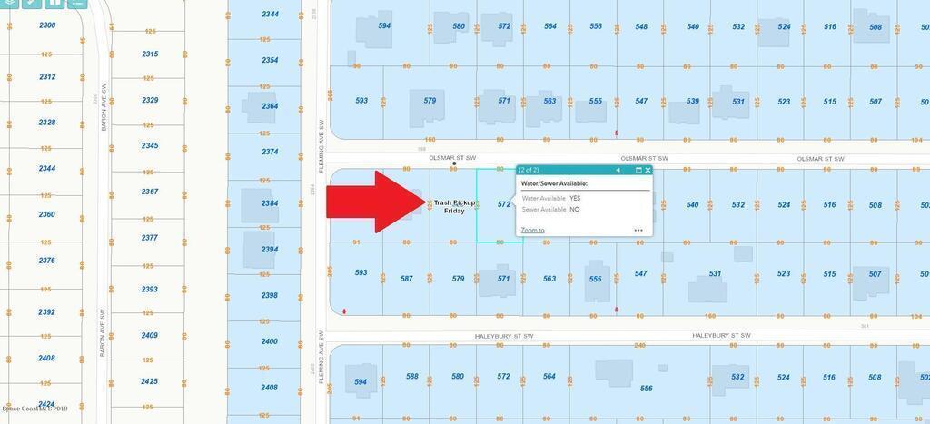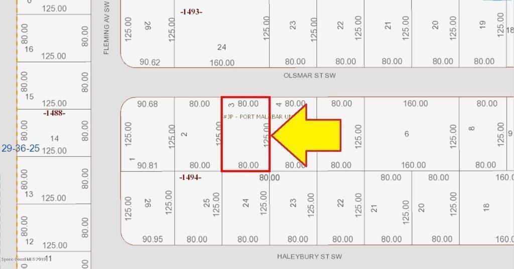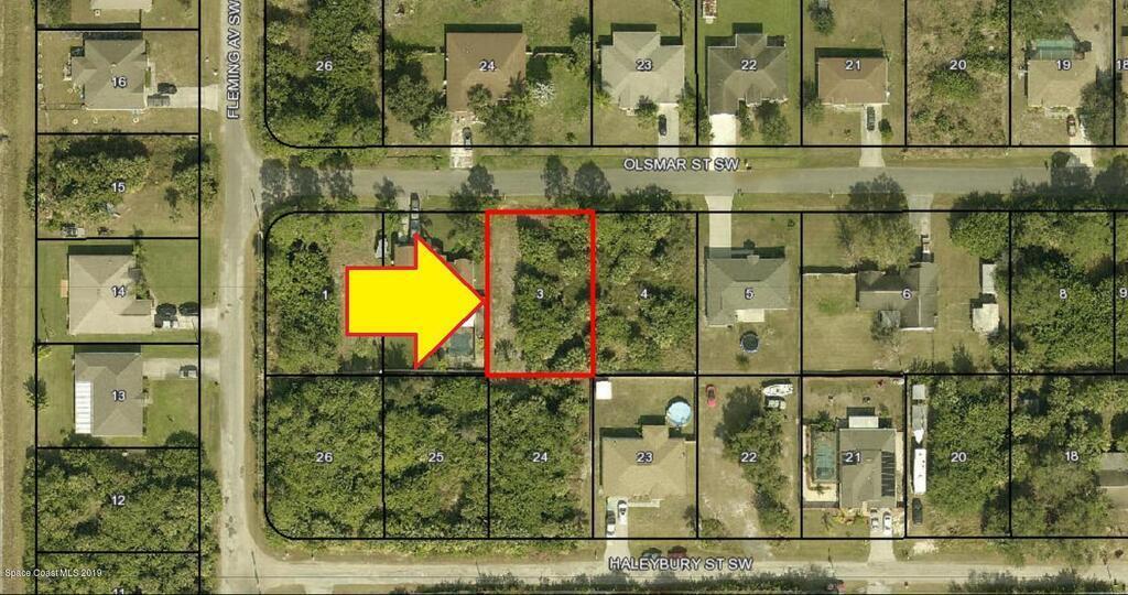 0.23 acre build-able single family residential lot [SRE Zoning with 1800 sq. ft. minimum home) available in the highly desired Port Malabar Unit #31 of Palm Bay. The property is only 2.2 miles from the famous Compound and 3 miles to Bayside Lakes. Located in the southwest section, this lot has City Water available, and is just 1.2 miles - 3 minutes to Westside Elementary School, 3.2 miles - 7 minutes to the Publix Supermarket, 14.7 miles - 27 minutes to Melbourne International Airport, and 17.5 miles - 31 minutes to the beaches of Indialantic. From exit #176 of I-95 go west on Palm Bay Road NE for .7 miles, left on Minton Road for 3.3 miles, right on Jupiter Boulevard SW for .1 mile, left on DeGroodt Road SW for 3.5 miles, and right on Olsmar. The lot will be on your left in .7 miles.