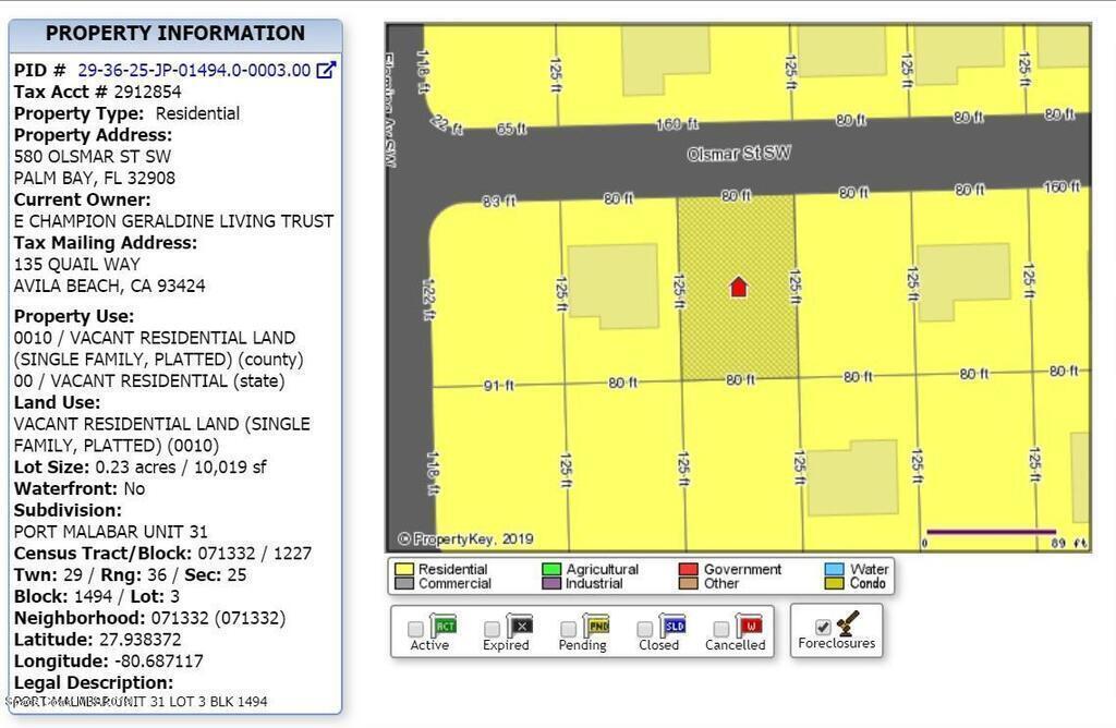 Property Listing Details for 580 Olsmar Street, Palm Bay, FL 32908