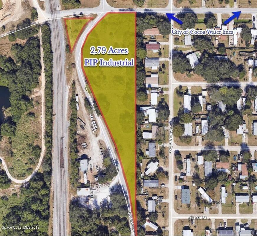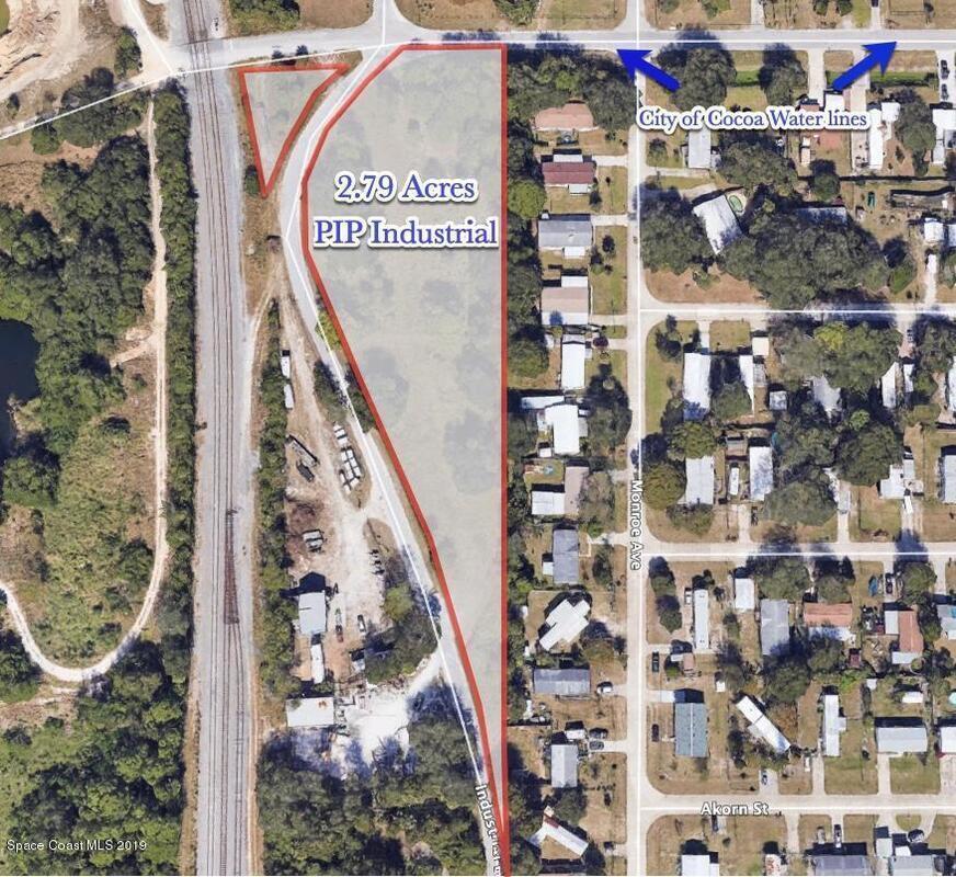 Offering consists of 2.79 vacant land parcel. The property has approximately 1100 feet of frontage on Industrial Drive andapproximately 200 feet of frontage on Broadway Boulevard (includes both sidesof Industrial Drive). The property is zoned Planned Industrial Park through Brevard County. Pleasesee specifications in attached BDP. City of Cocoa Water available (frontage on Broadway Boulevard - needs serviceline and meter) - No sewer available Traffic counts on nearby US Highway 1 is 29,210 cars passing daily. Parcel ID: 23-35-25-00-1 / TID: 2311419 / Taxes: $528.72