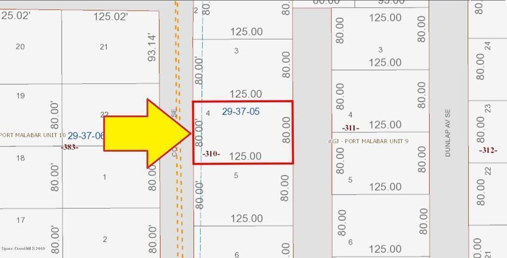 0.23 acre build-able single family residential lot available in Port Malabar Unit #9 of Palm Bay. Located in the southeast section, this lot has a drainage canal in the rear, allowing more privacy, has City Water available, and is just 1 mile - 3 minutes to Turner Elementary School, 1.2 miles - 4 minutes to the Walmart Supercenter, 9.7 miles - 23 minutes to Melbourne International Airport, and 11.5 miles - 26 minutes to the beaches of Indialantic. From exit #173 of I-95 go west on Malabar Road NE for 1.2 miles, and left on Cownie Avenue. The lot will be on your left.