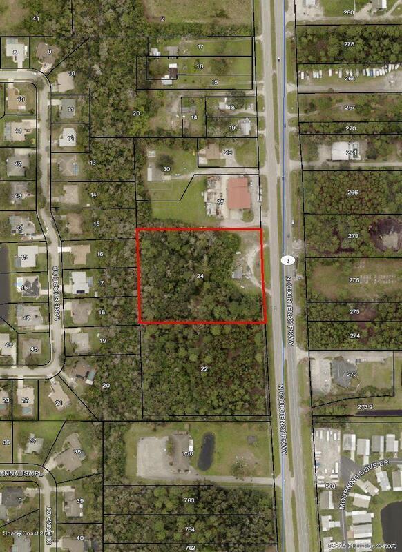 Here's the perfect opportunity to own over 3 acres of Commercial/Residential land in North Merritt Island! The front 1/2 of the parcel boasts 325 feet of frontage along N Courtenay Parkway and is zoned BU-1 General Retail Commercial. Then the bonus, the back 1/2 includes a small single family home and is zoned AU Single Family Residential. This lot is surrounded by residential communities providing instant customer base.