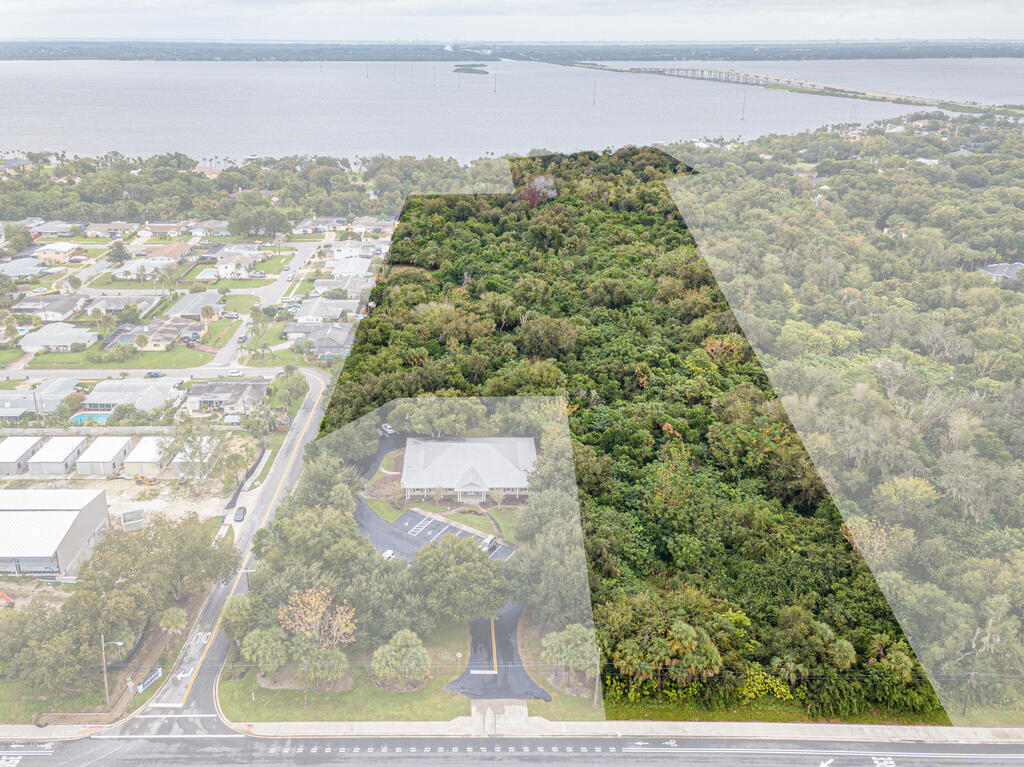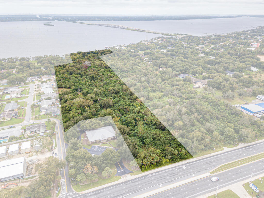 14 ACRES WITH WATER FRONT TO THE EAST AND HIGHWAY ON THE WESTSIDE - US 1 TO INDIAN RIVER. APPROVED FOR DEVELOPMENT BY BREVARD COUNTY UNDER A BINDING DEVELOPMENT PLAN PROPERTY THAT IS PLATTED FOR 3 DIRECT WATERFRONT LOTS 1/2 ACRE EACH, AND 10 RESIDENTIAL LOTS RANGING FROM 1/2 TO 3/4 OF AN ACRE EACH, WITH WATER VIEWS AND A RESIDENTIAL /PROFESSIONAL LOT ON US 1 THAT IS ADJACENT TO SUCCSSFUL TITLE AND LEGAL COMPANY. FEATURES HIGH ELEVATION. GREAT VIEWS OF WATER AND 528 BRIDGE TO SOUTH, WATCH FUTURE SPACE-X LAUNCH MISSIONS ALONG THE WATERS EDGE