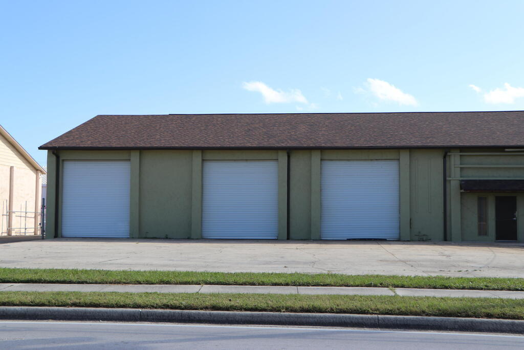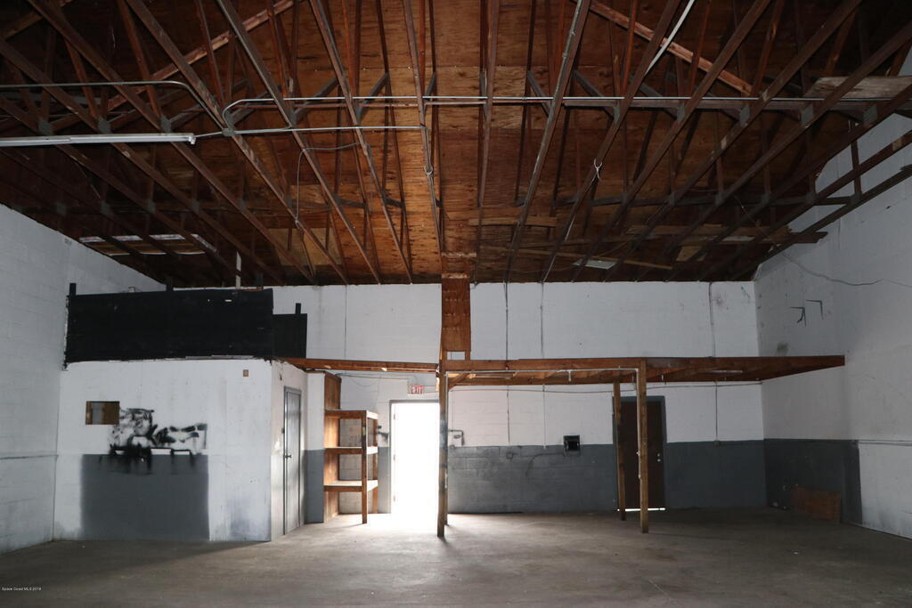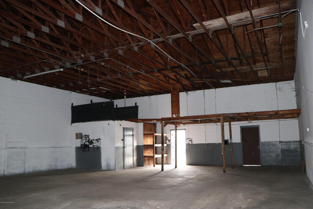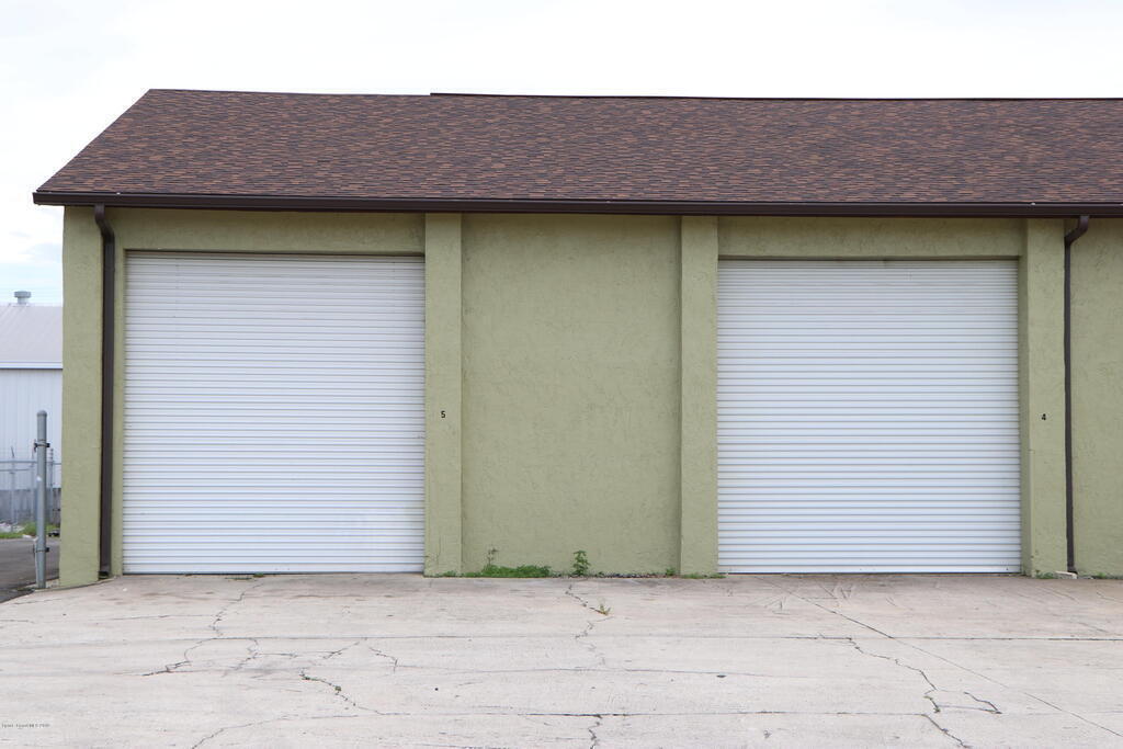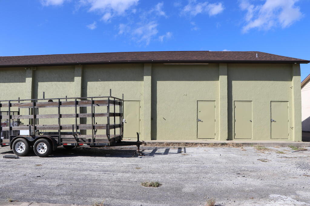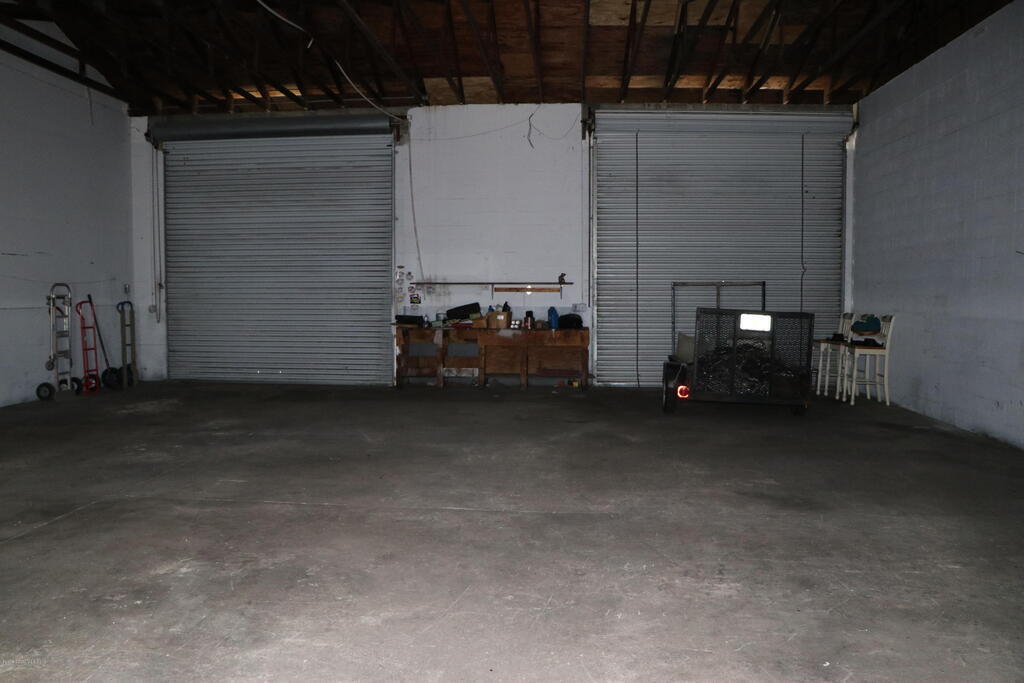 Unit numbers 4,5 available on East end of warehouse by driveway entrance ; Concrete Block Building with open Trussed Roof. (no ceiling) Easy access location, just west of the Peachtree railroad tracks. 1 city block to US1 or 520, maybe 4 miles to I95. Unit has 2 Large 12' wide and 12' tall, roll up doors in the front with 2 personal entry doors in the rear along with restroom in rear. 3 phase power available if needed. Client parking in front and added parking or storage in the rear behind bays. Al Cheapo currently in bays 1,2,3. Rent is $1350..00 plus tax