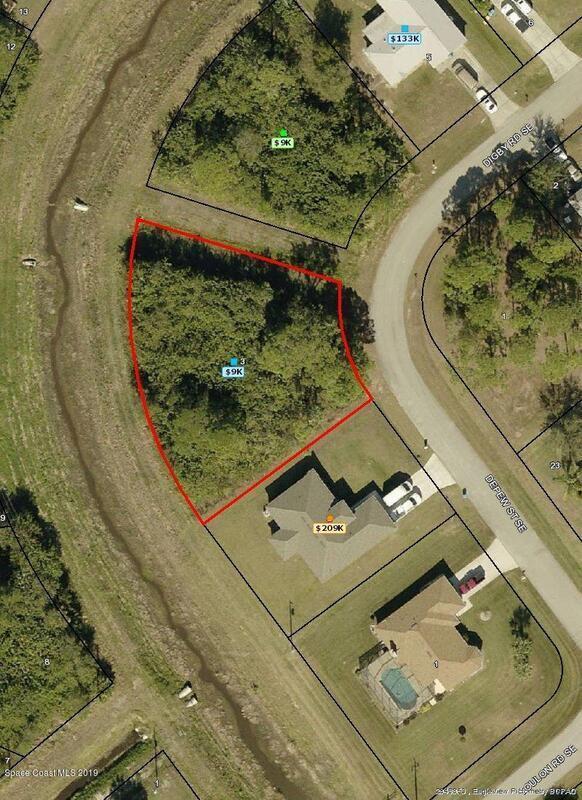 BEAUTIFUL OVERSIZED CITY WATER/SEPTIC LOT. EASY TO FIND NOT FAR FROM THE MAIN ROAD. THE CANAL BEHIND GIVES THE PROPERTY EXTRA PRIVACY. PAVED ROADS AND LOTS OF NEW CONSTRUCTION THROUGHOUT THE NEIGHBORHOOD. SHORT DRIVE TO SHOPPING AREAS, A PARK, I-95 ACCESS AT MALABAR RD AND SOON THE NEW INTERCHANGE. TAKE A DRIVE BY!