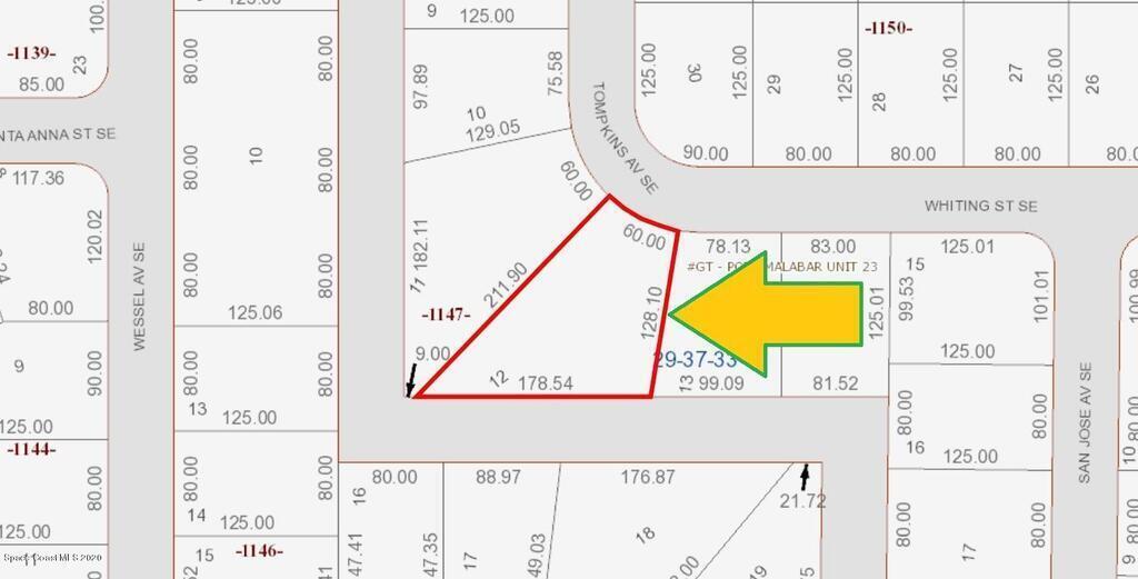 Oversized 0.46 acre (just under 1/2 acre of property!) buildable single family residential lot available in Port Malabar Unit #23 of Palm Bay. Located in the southeast section near Bayside Lakes and the PGA Majors Golf Course, this lot has a drainage canal in the rear, allowing more privacy, and is just 1.1 miles - 4 minutes to Sunrise Elementary School, 5.7 miles - 11 minutes to the Publix Supermarket, 13.5 miles - 24 minutes to Melbourne Airport, and 15.3 miles - 27 minutes to the beaches of Indialantic. From exit #173 of I-95 go east on Malabar Road SE for .6 miles, right on Babcock Street for 5.9 miles, and right on Whiting Street. The lot will be on your left.