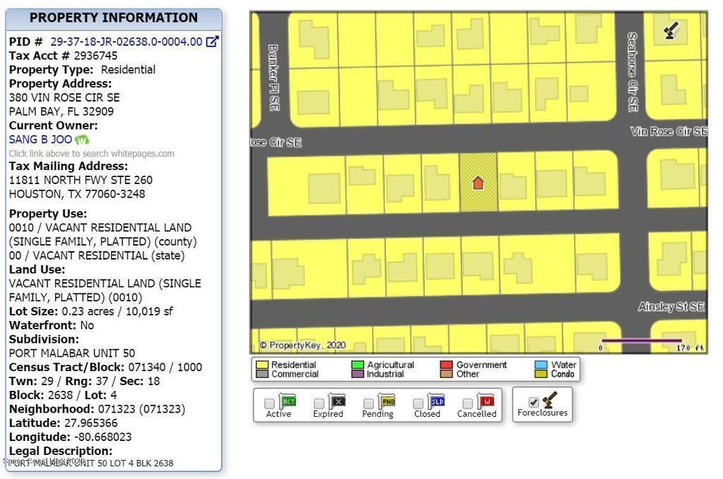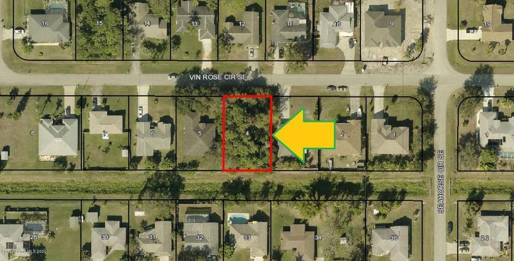 0.23 acre buildable single family residential lot available in Port Malabar Unit #50 of Palm Bay. Located in the southeast section, this lot has City Water available, and a drainage canal in the rear allowing more privacy, and is just 1.8 miles - 4 minutes to the Publix Supermarket, 3.3 miles - 7 minutes to Bayside High School, 12.2 miles - 25 minutes to Melbourne Airport, and 14.4 miles - 29 minutes to the beaches of Indialantic. From exit #173 of I-95 go west on Malabar Road NE for .2 miles, left on San Filippo Drive SE for .4 miles, right on Jupiter Boulevard SE for 1.7 miles, left on Eldron Boulevard SE for 1.4 miles, and right on Vin Rose Circle. The lot will be on your left in .5 miles.
