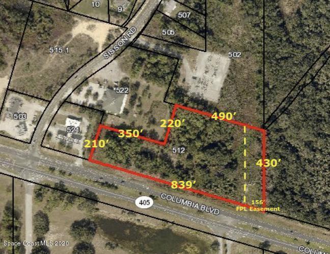 7.14+ acres commercially zoned vacant land located directly on SR 405 (Columbia Blvd) with 986' approximate frontage. Columbia Blvd, main traffic corridor leading to NASA/Kennedy Space Center and Exploration Park (home to Blue Origin, One Web and Firefly).