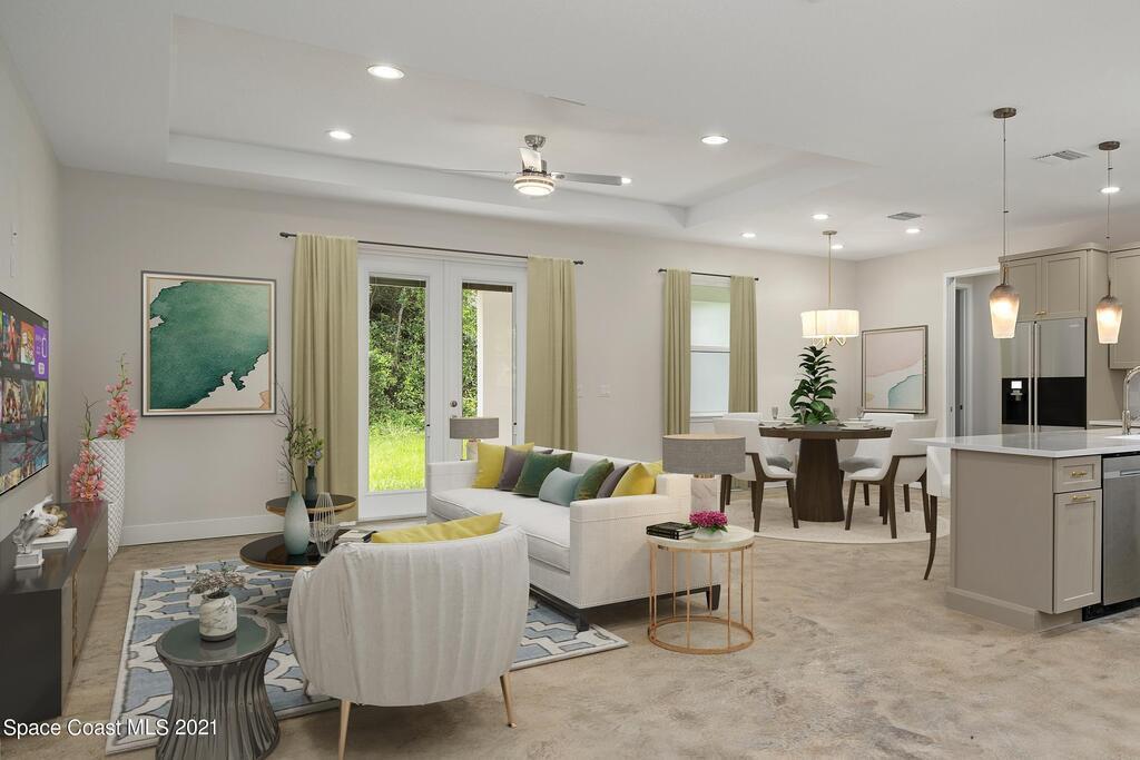 Elegant to-be-built Sanibel Model Key West style home, showcasing high-tech, & easily maintained architectural features! Topped w/a metal roof & radiant barrier, this beauty includes a smart A/C, smart tankless water heater, refrigerator & garage door, & impact glass windows. Modern stained concrete floors underscore a sleek granite kitchen w/ stainless steel appliances, Shaker style cabinetry, designer backsplash, & farmhouse sink. Tray ceilings crown a bright, open great room plan w/formal & casual dining. The artfully crafted master suite presents a big walk-in closet w/ a beautifully equipped bath exhibiting a separate spa tub & shower. Celebrate the outdoors through huge french doors to the covered porch! Contract early for your choice of finishes and flooring.