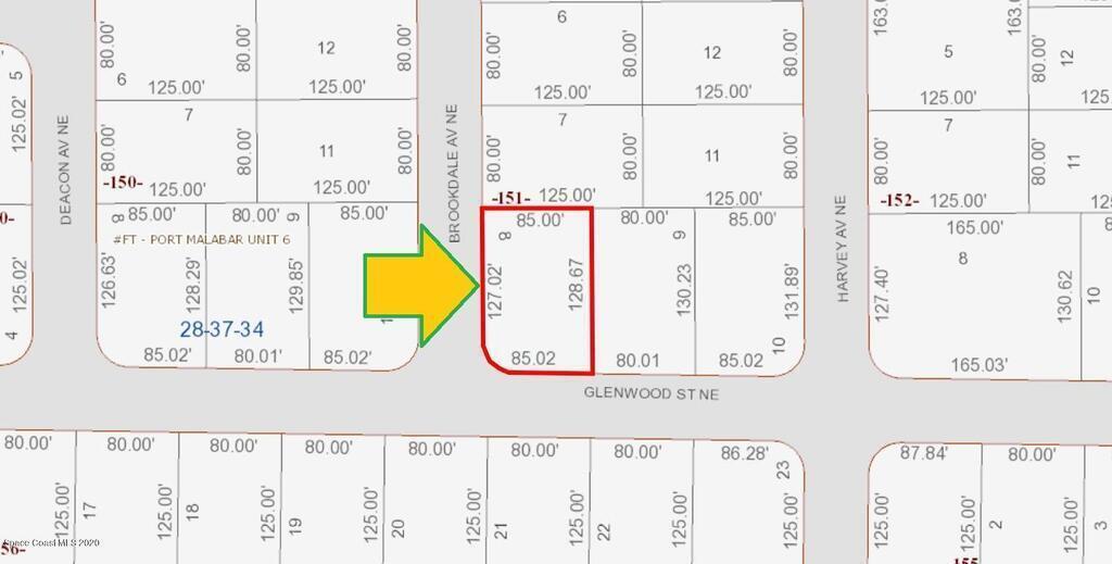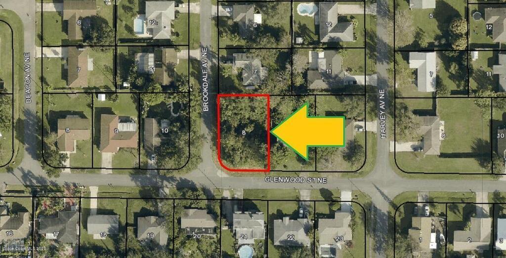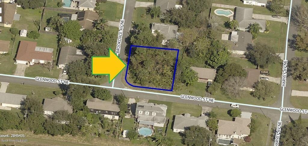 0.25 acre buildable Corner single family residential lot available in Port Malabar Unit #6 of Palm Bay. Located in the northeast section, this lot has City Water available, and is just .3 miles - 2 minutes to Port Malabar Elementary School, 2 miles - 4 minutes to the Publix Supermarket, 7 miles - 17 minutes to Melbourne Airport, and 8.9 miles - 20 minutes to the beaches of Indialantic. From exit #173 of I-95 go east on Malabar Road SE for .6 miles, left on Babcock Street for .6 miles, right on Apache Street NE for 292 feet, right at Addison Avenue for 243 feet, Addison turns left and becomes Glenwood. The lot will be on your left.