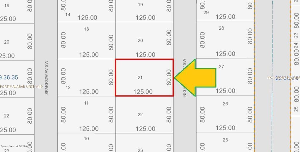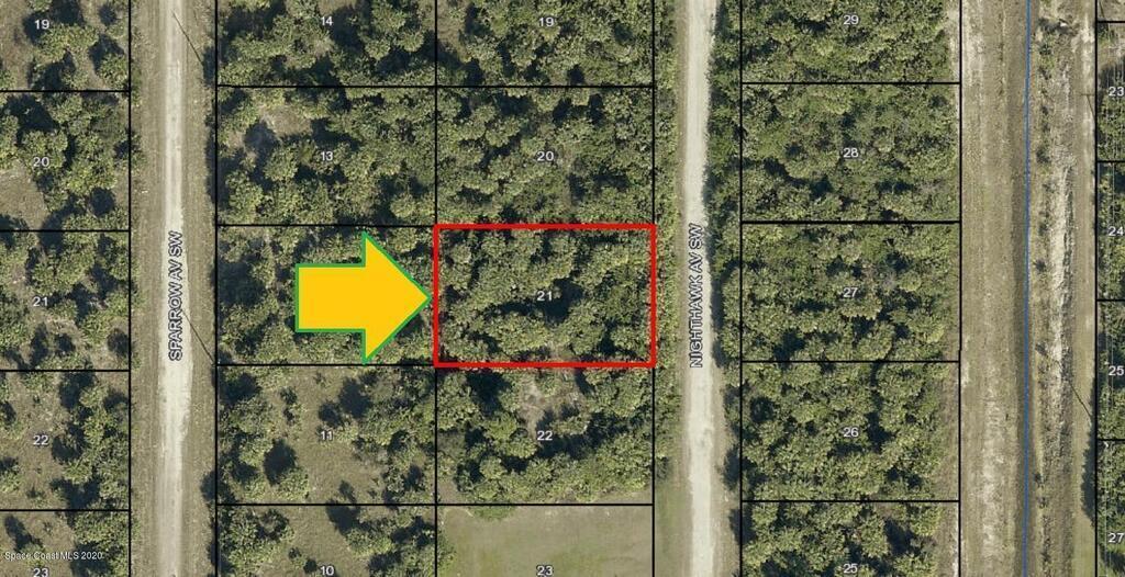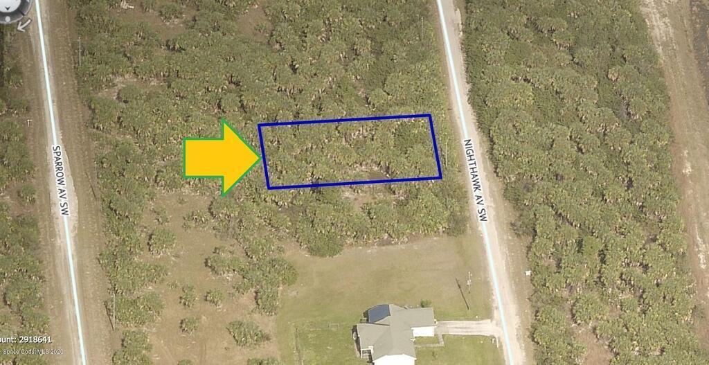 0.23 acre buildable single family residential lot available in Port Malabar Unit #49 of Palm Bay. Located in the southwest section near the famous Compound area, this lot is just 3.2 miles - 7 minutes to Westside Elementary School, 5.2 miles - 10 minutes to the Publix Supermarket, 16.4 miles - 31 minutes to Melbourne Airport, and 18.3 miles - 35 minutes to the beaches of Indialantic. From Exit #176 of I-95 go west on Palm Bay Road NE. Turn left on Minton Road and proceed south for 3.3 miles. Turn right on Jupiter Boulevard SW and left on De Groodt Road SW. Proceed south for 4.6 miles and turn right on St Andre Boulevard. Proceed 1.1 miles and turn left on Moss Terrace which becomes Nighthawk Avenue. The lot is on your right.
