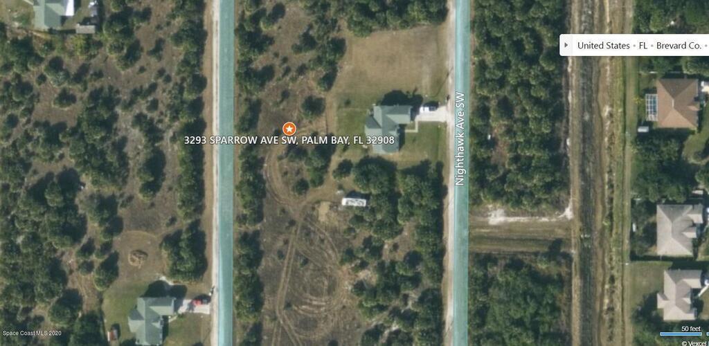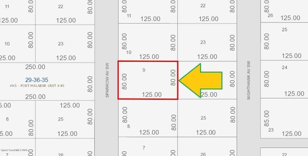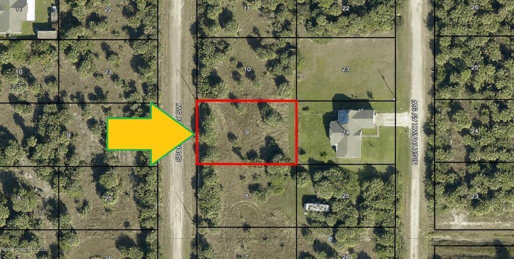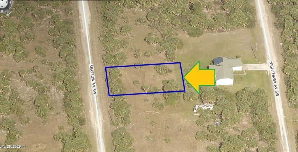 0.23 acre buildable single family residential lot available in Port Malabar Unit #49 of Palm Bay. Located in the southwest section near the famous Compound area, this lot is just 3.3 miles - 8 minutes to Westside Elementary School, 5.3 miles - 11 minutes to the Publix Supermarket, 16.5 miles - 32 minutes to Melbourne Airport, and 18.4 miles - 36 minutes to the beaches of Indialantic. From Exit #176 of I-95 go west on Palm Bay Road NE. Turn left on Minton Road and proceed south for 3.3 miles. Turn right on Jupiter Boulevard SW and left on De Groodt Road SW. Proceed south for 4.6 miles and turn right on St Andre Boulevard. Proceed 1.1 miles and turn left on Moss Terrace which becomes Nighthawk Avenue. Turn right on Hoja Street and Left on Sparrow Avenue. The lot will be on the left.